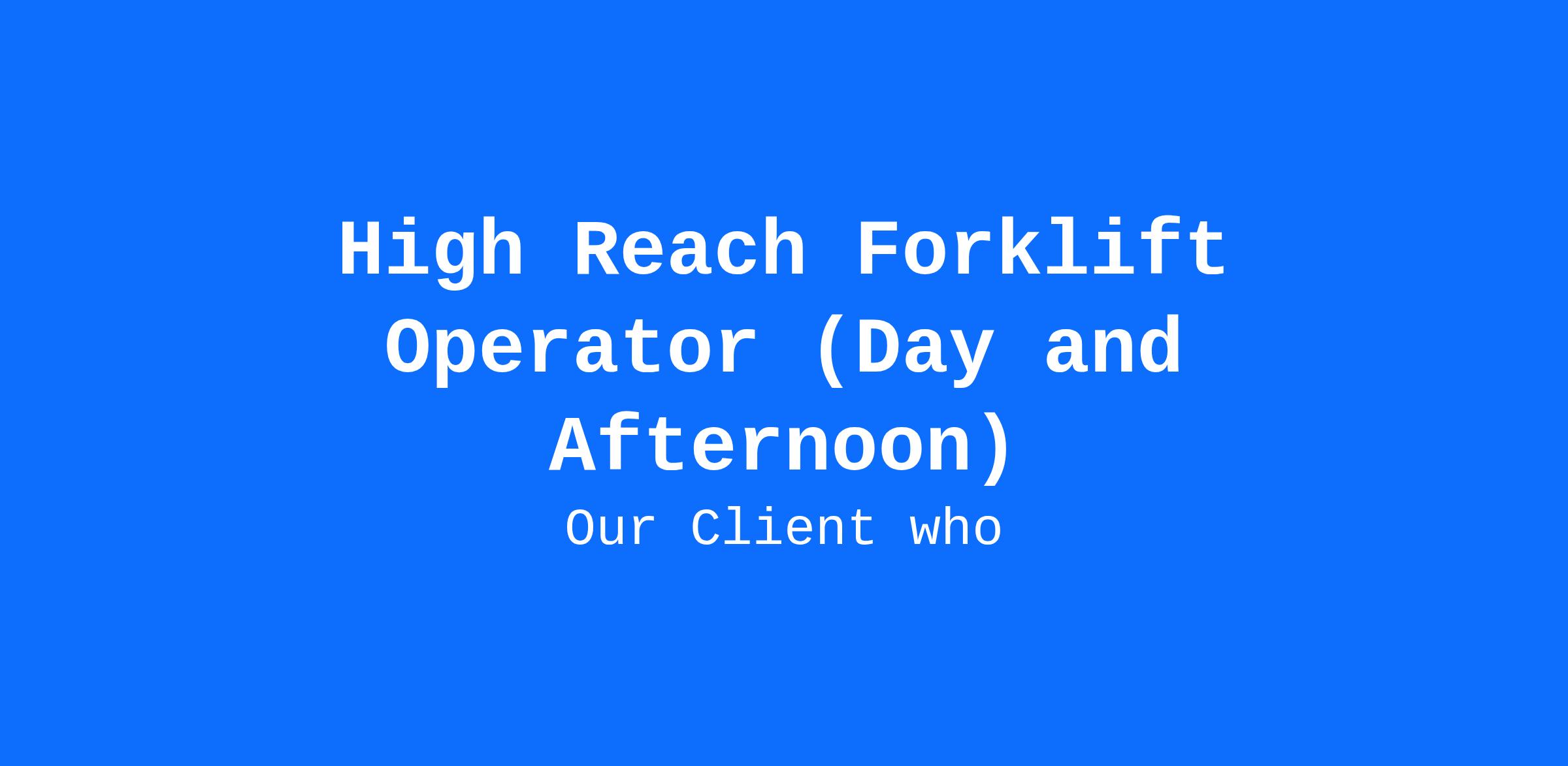 Our Client who is a market leader in the automotive distribution industry are currently looking for proactive and reliable Reach Forklift Operators to join their dynamic team on the day and afternoon shifts based in Tullamarine.