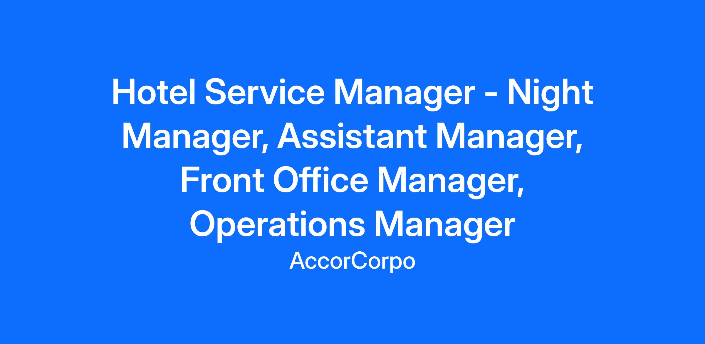 We have a number of different manager roles available including Night Manager, Assistant Manager, Front Office Manager, Operations Manager, and Housekeeping Manager.