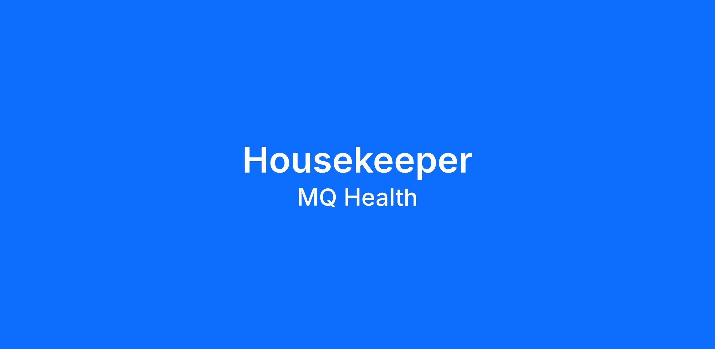 Immediate start for an experienced and hardworking Housekeeper to join our team at Macquarie University Hospital on a Casual basis.