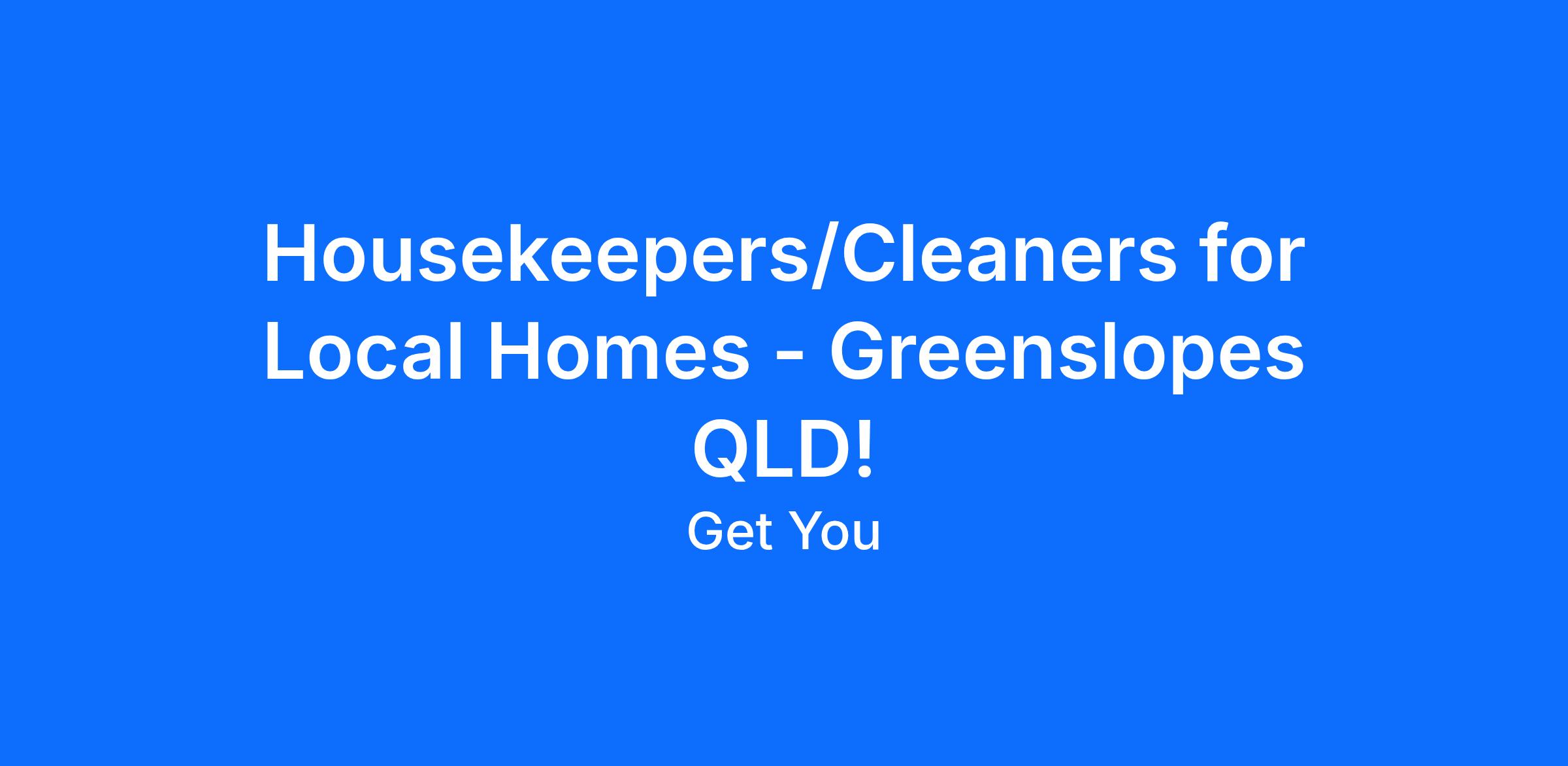 Housekeepers / Cleaners, Greenslopes QLD<\/b> Join Get You Housekeeping<\/b>, a trusted company with 14 years of experience providing professional housekeeping services across Brisbane and Sydney. We specialise in regular weekly housekeeping for private homes, not one -off or commercial cleaning. If you live in or can travel to Greenslopes or nearby suburbs such as Holland Park, Coorparoo, Stones Corner, Annerley, Camp Hill, or surrounding areas, we would love to hear from you! What We Offer<\/b> $32.25 to $45.50 per hour, paid weekly on Tuesdays Ongoing weekly shifts with the same clients Weekday work only, no weekends or late nights Minimum 3 to 4 hour shifts Cleaning products and supplies provided by clients Paid in -person training before you start Supportive and professional management team Promotion opportunities for reliable and consistent workers Your Role<\/b> Clean kitchens, bathrooms, floors, and living areas Make and change beds Laundry duties including folding and ironing General tidying and light household organising Who We Are Looking For<\/b> Experience in housekeeping or residential cleaning Living in Greenslopes or happy to travel locally Availability any day from Monday to Friday between 8 am and 6 pm Conversational English Already in Australia with valid work rights Working Holiday Visa applicants must have solid cleaning experience and commit to a minimum of six months Why Work With Us<\/b> We are not a gig app or short -term agency. We offer steady, long -term roles with regular clients. We assign homes close to where you live to reduce travel time. How to Apply<\/b> Apply through this job ad or email your resume to: