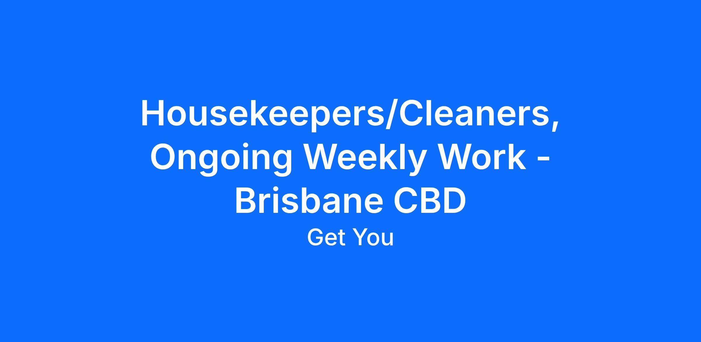 Housekeepers / Cleaners, Brisbane CBD QLD<\/b> Join Get You Housekeeping<\/b>, a trusted company with 14 years of experience providing professional housekeeping services across Brisbane and Sydney. We specialise in regular weekly housekeeping for private homes, not one off or commercial cleaning. If you live in or can travel to Brisbane CBD or nearby suburbs such as Spring Hill, Kangaroo Point, South Brisbane, Fortitude Valley, New Farm, or surrounding areas, we would love to hear from you. What We Offer<\/b> $32.25 to $45.50 per hour, paid weekly on Tuesdays Ongoing weekly shifts with the same clients Weekday work only, no weekends or late nights Minimum 3 to 4 hour shifts Cleaning products and supplies provided by clients Paid in person training before you start Supportive and professional management team Promotion opportunities for reliable and consistent workers Your Role<\/b> Clean kitchens, bathrooms, floors, and living areas Make and change beds Laundry duties including folding and ironing General tidying and light household organising Who We Are Looking For<\/b> Experience in housekeeping or residential cleaning Living in Brisbane CBD or happy to travel locally Availability any day from Monday to Friday between 8 am and 6 pm Conversational English Already in Australia with valid work rights Working Holiday Visa applicants must have solid cleaning experience and commit to a minimum of six months Why Work With Us<\/b> We are not a gig app or short term agency. We offer steady, long term roles with regular clients. We assign homes close to where you live to reduce travel time. How to Apply<\/b> Apply through this job ad or email your resume to: