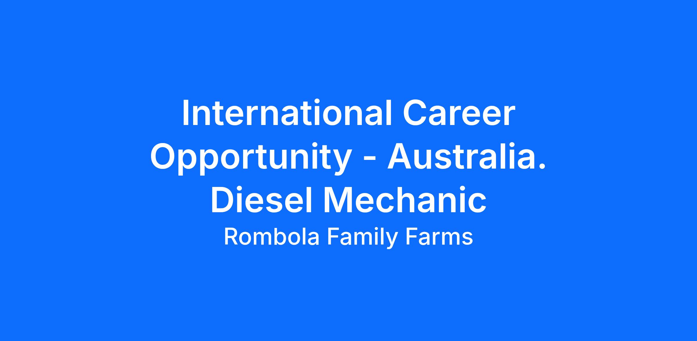 If you’re hands-on with strong Diesel Mechanic expertise and are ready to take the next step in your career overseas, this could be the opportunity you’ve been waiting for.