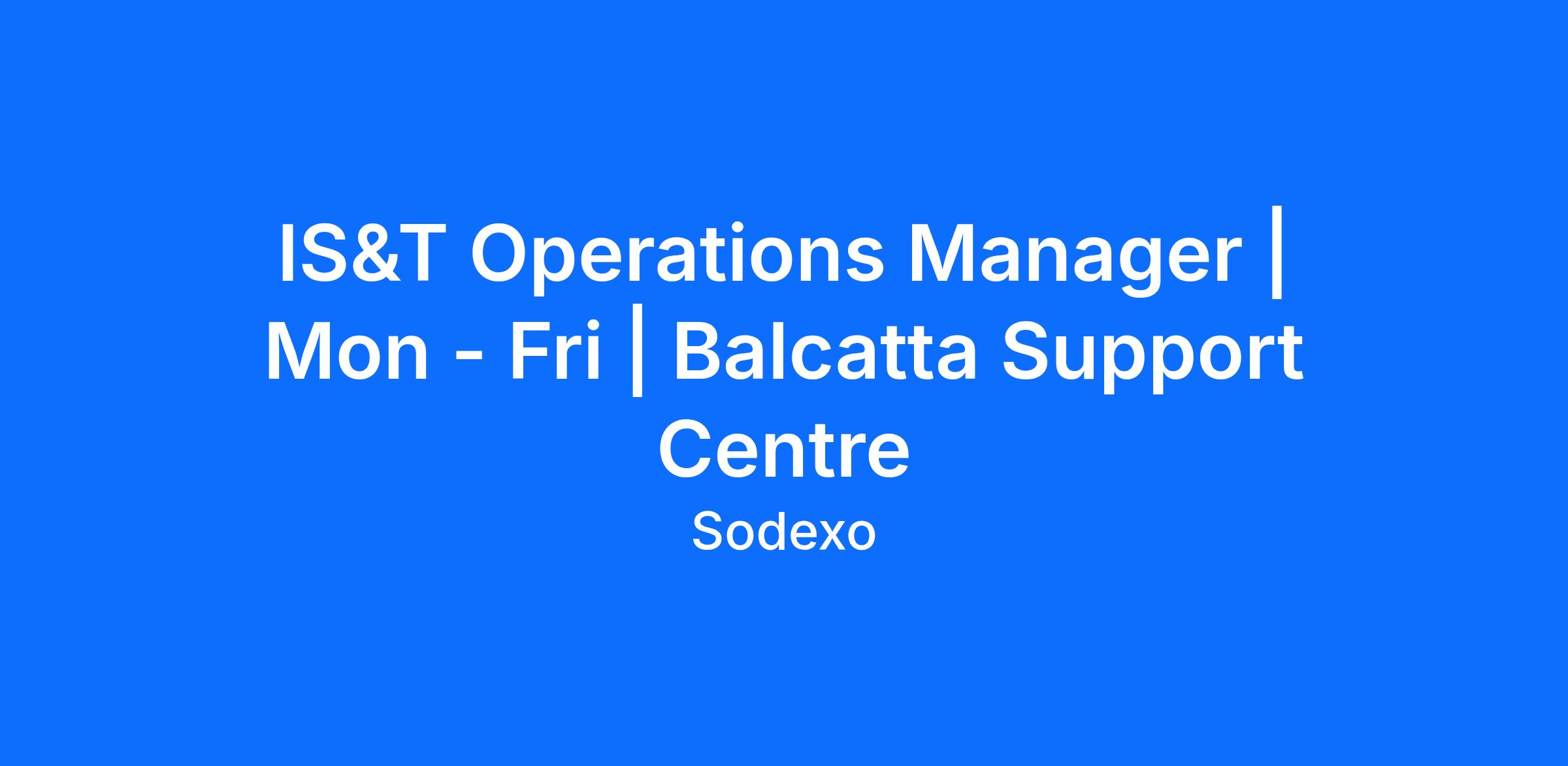 The IT Operations Manager (D365 & Azure) is responsible for ensuring the stability, performance, and continuous improvement of Sodexo’s Microsoft Dynamics 365 and Azure environments.