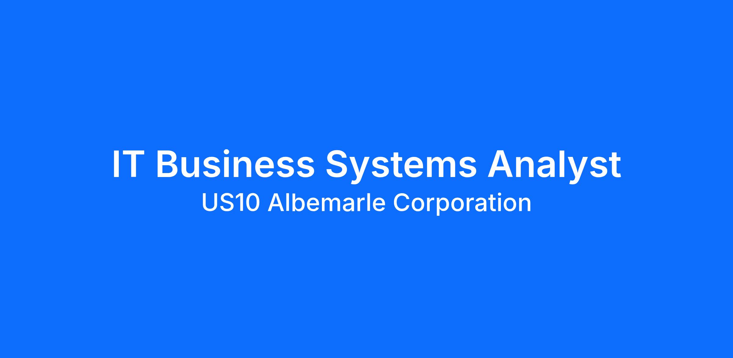 Albemarle Corporation seeks IT Business Systems Analyst in Charlotte, NC.