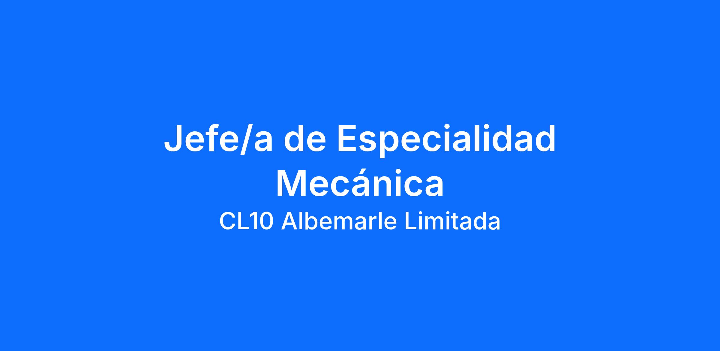 Albemarle está contratando para un/a Jefe/a de Especialidad Mecánica en Planta La Negra, Antofagasta.
