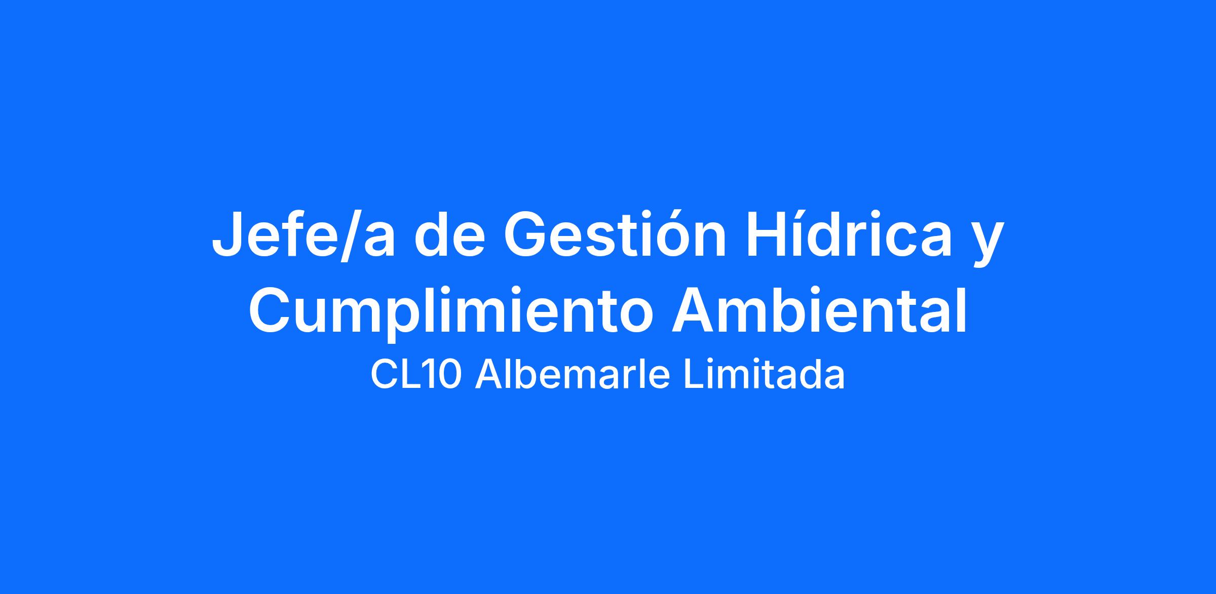 Albemarle está contratando para un/a Jefe/a Gestión Hídrica y Cumplimiento Ambiental en Santiago.