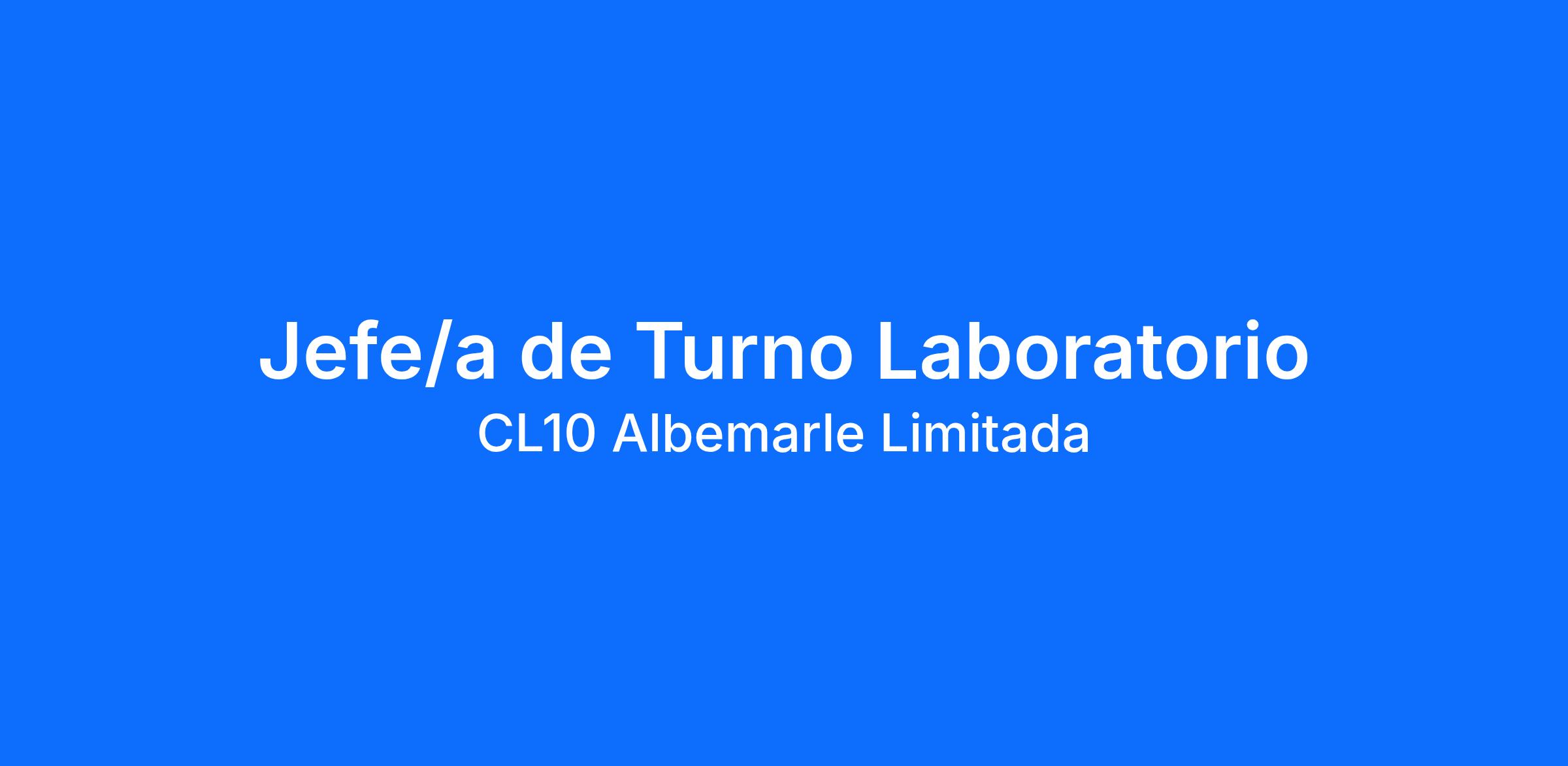 Albemarle está contratando para un/a Jefe/a de Turno Laboratorio para Planta Salar, bajo sistema de turno 7x7.