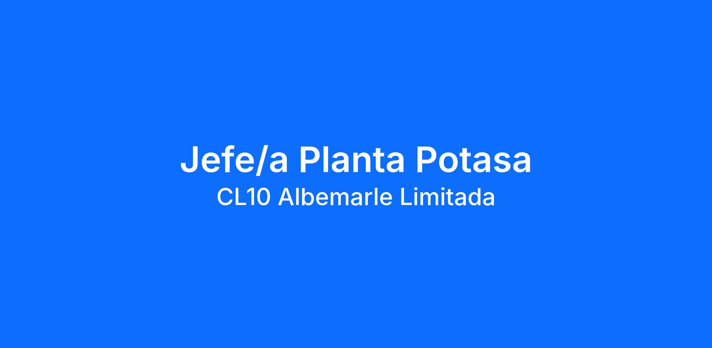 Albemarle está contratando para un Jefe/a Planta Potasa en Planta Salar, bajo sistema de turnos 4x3.