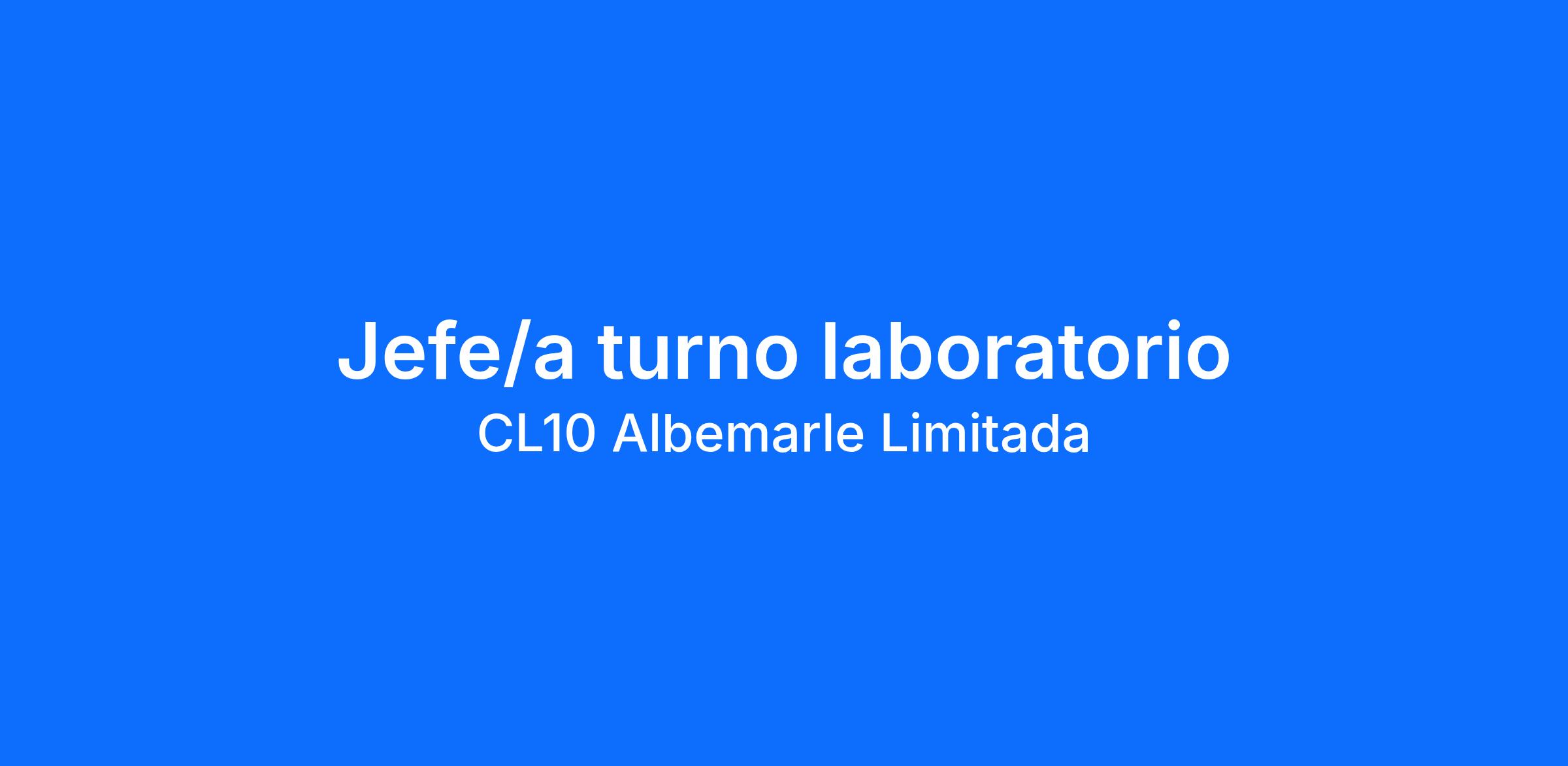 Albemarle está contratando para un/a Jefe/a de Turno Laboratorio para Planta Salar, bajo sistema de turno 7x7.