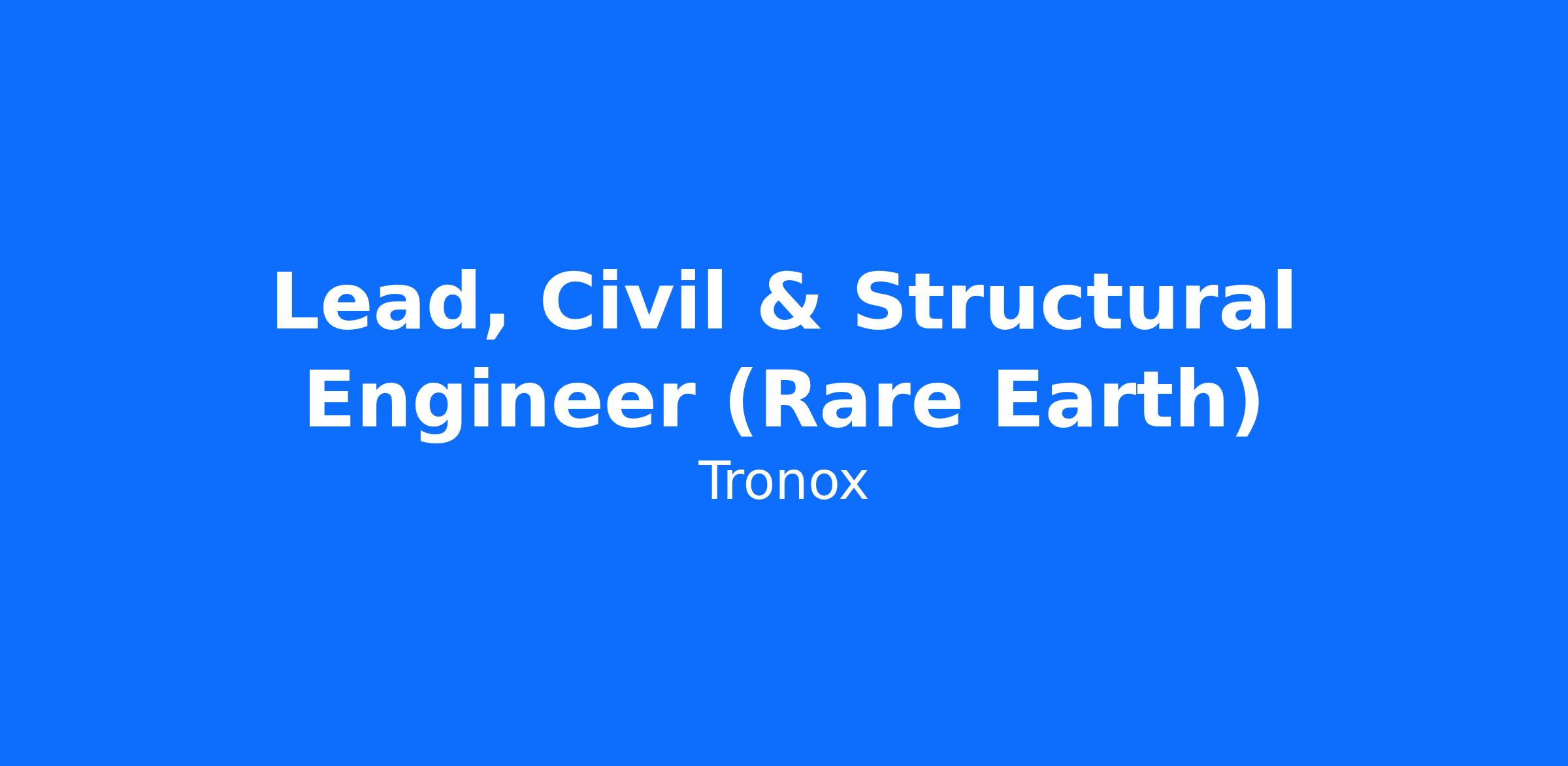 Tronox is seeking a technically strong and delivery-focused ‘Lead Civil & Structural Engineer’ to support both the Definitive Feasibility Study (DFS) and Execution phases of a major Rare Earths development in Western Australia.