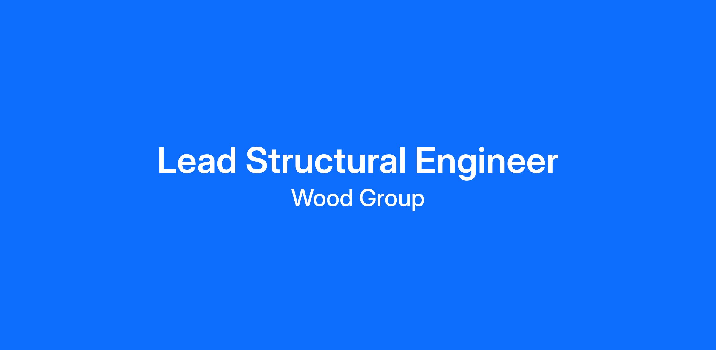 If you are a Lead Structural Engineer looking for an opportunity to take the lead during an exciting growth phase for Wood - apply today!