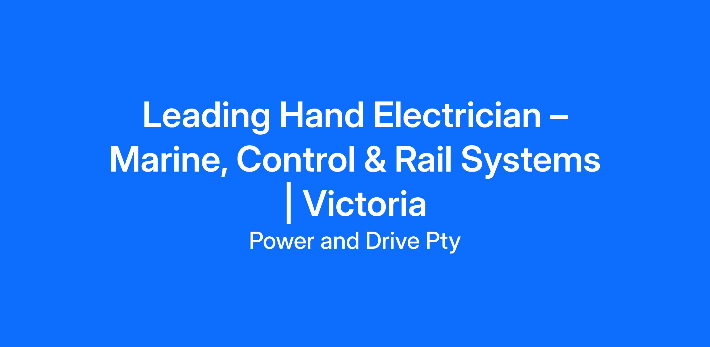 As part of our continued national rollout, Power & Drive Solutions are expanding their presence in Victoria, creating an exciting opportunity to help establish and grow our marine and rail electrical services in the region.