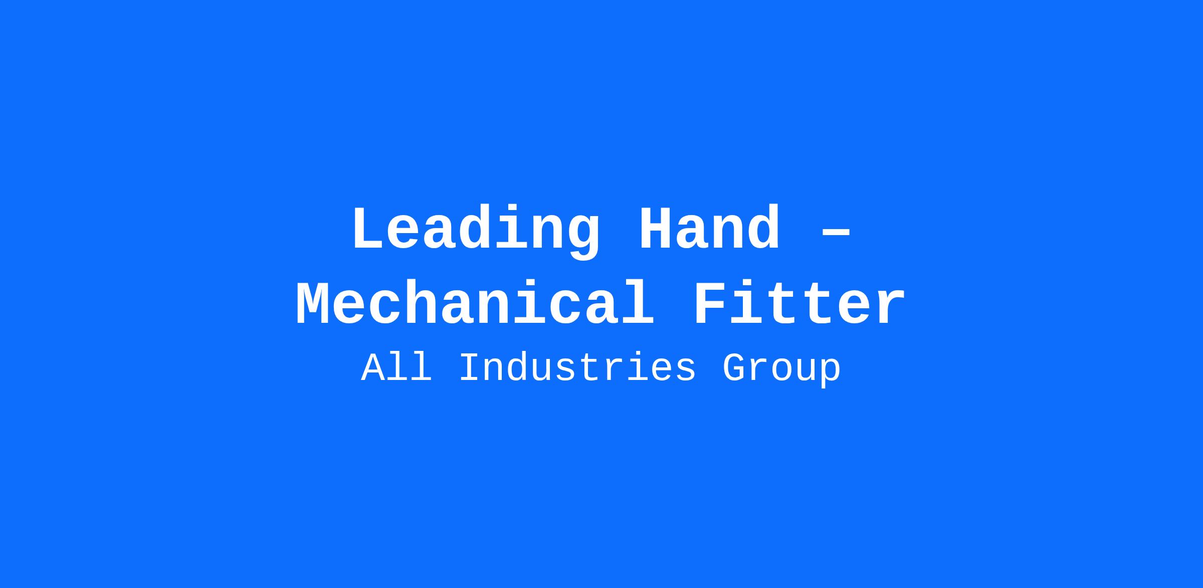 We are seeking a skilled and motivated Leading Hand Mechanical Fitter to join our team. This hands-on leadership role is ideal for someone with strong mechanical aptitude, proven experience in fitting and maintenance, and the ability to lead a small team in a fast-paced environment.