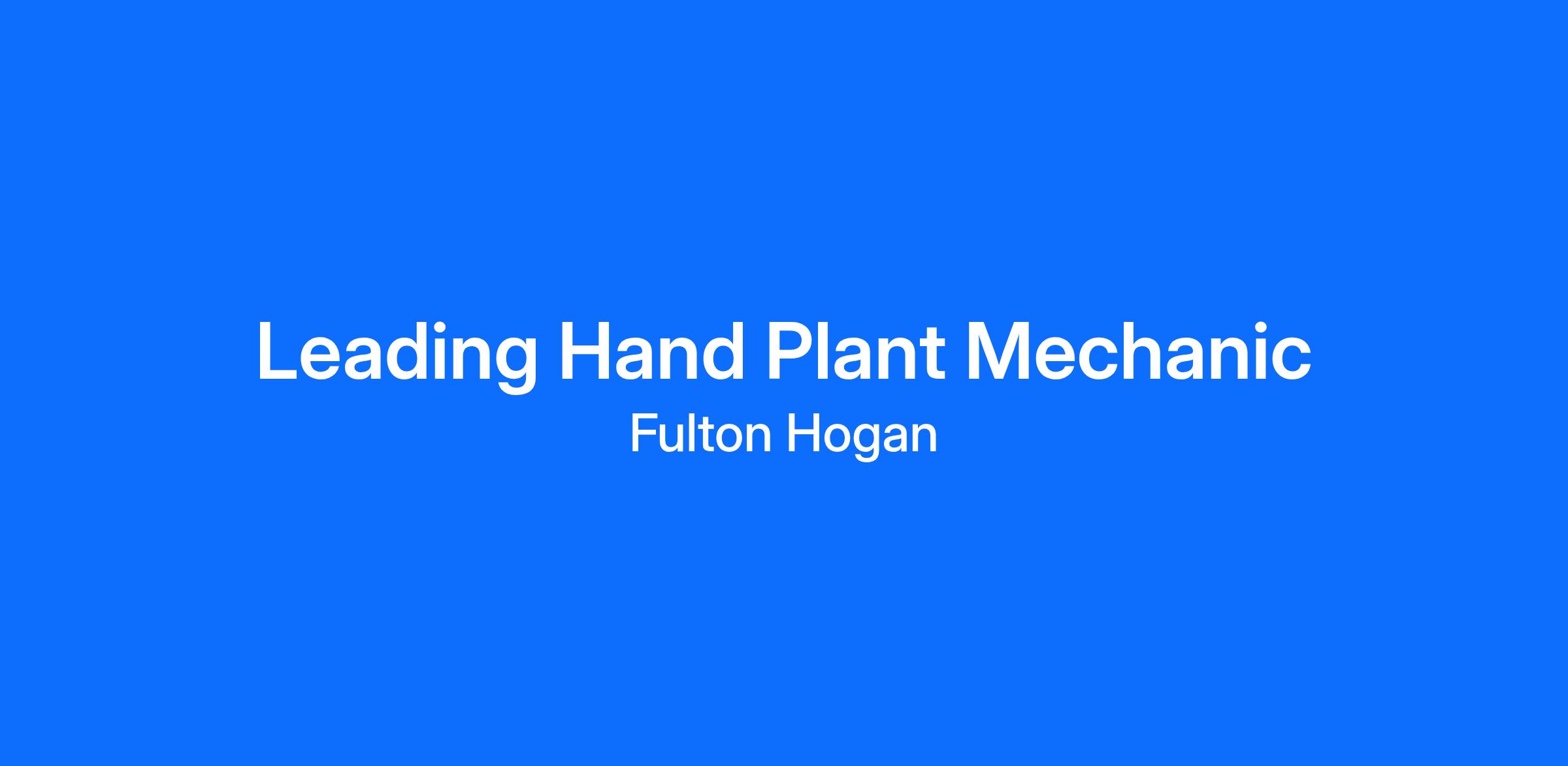 Leading Hand Plant Mechanic