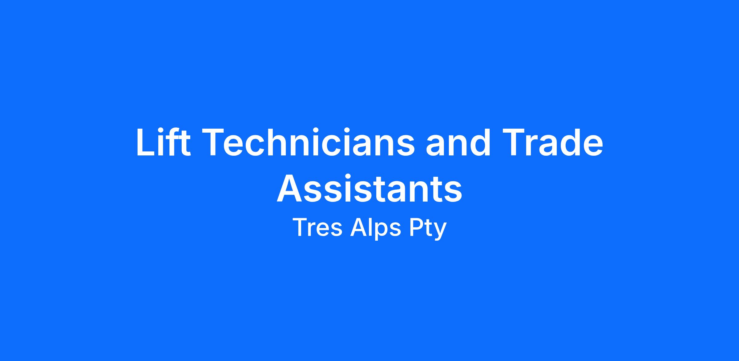 Trade Assistants (casual) – support (and learn from) experienced professionals and gain hands-on experience in the lift industry. We have immediate starts available.