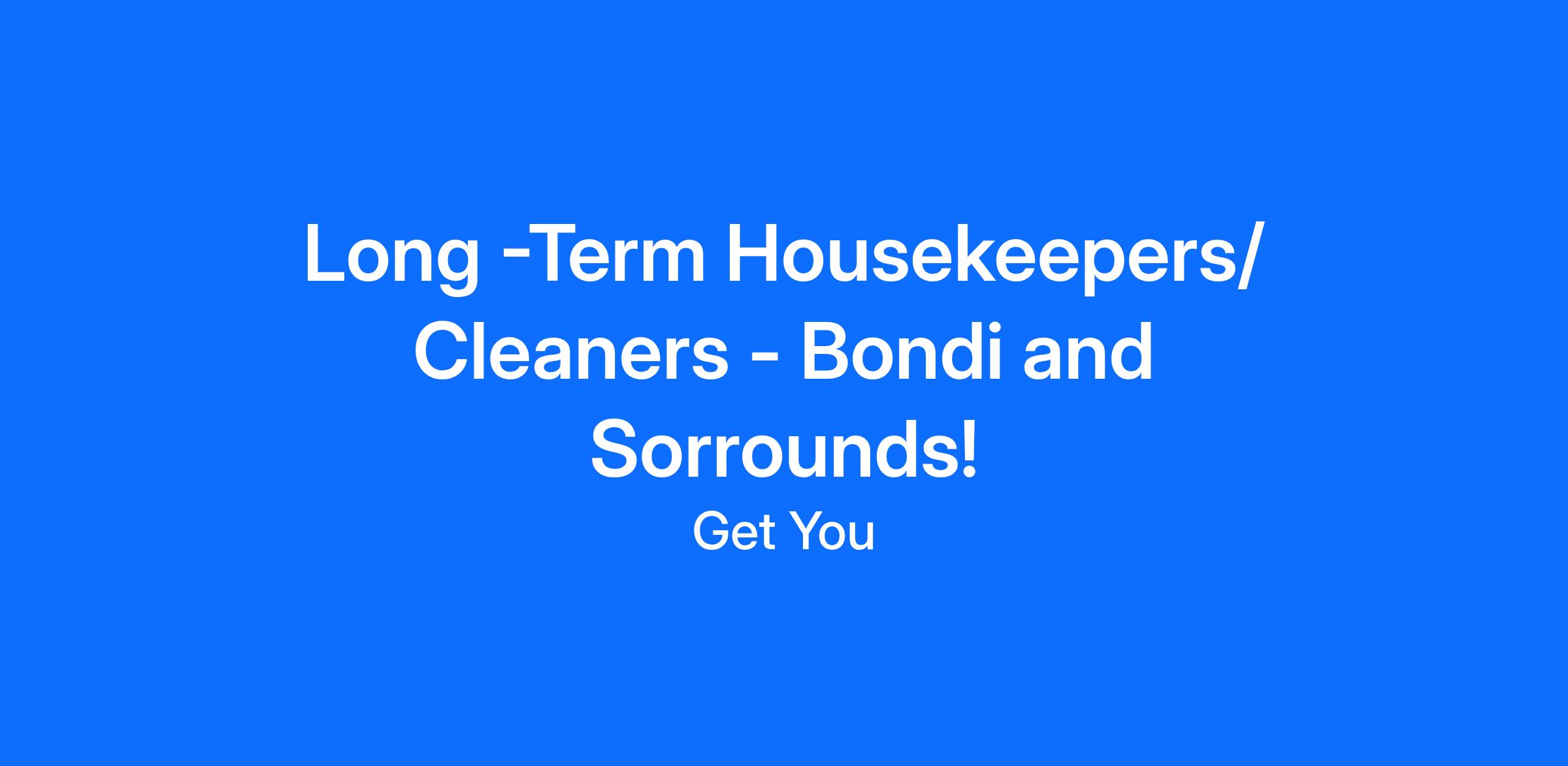 Housekeepers / Cleaners, Bondi Junction NSW<\/b> Join Get You Housekeeping, a trusted company with 14 years of experience providing professional housekeeping services across Sydney and Brisbane. We focus on regular weekly housekeeping for private homes, not one -off or commercial cleaning. If you live in or can travel to Bondi Junction or nearby suburbs such as Bondi, Bronte, Waverley, Queens Park, Bellevue Hill, Paddington, Randwick, Clovelly, or Woollahra, we would love to hear from you! <\/p> <\/p> <\/p> <\/p> <\/p> <\/p> We are not a gig app or short -term agency. We offer steady, long -term roles with regular clients. We assign homes close to where you live to reduce travel time. <\/p>