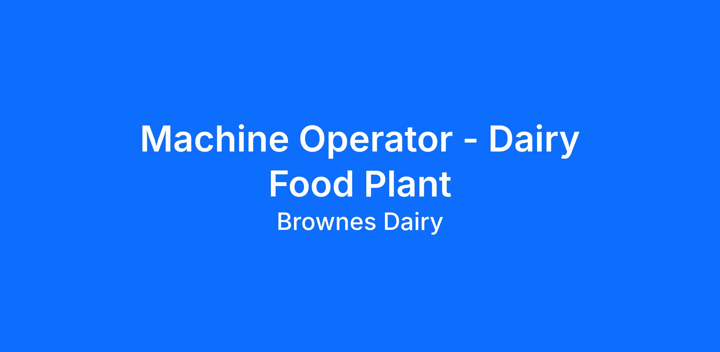 Machine Operator - Dairy Food Plant