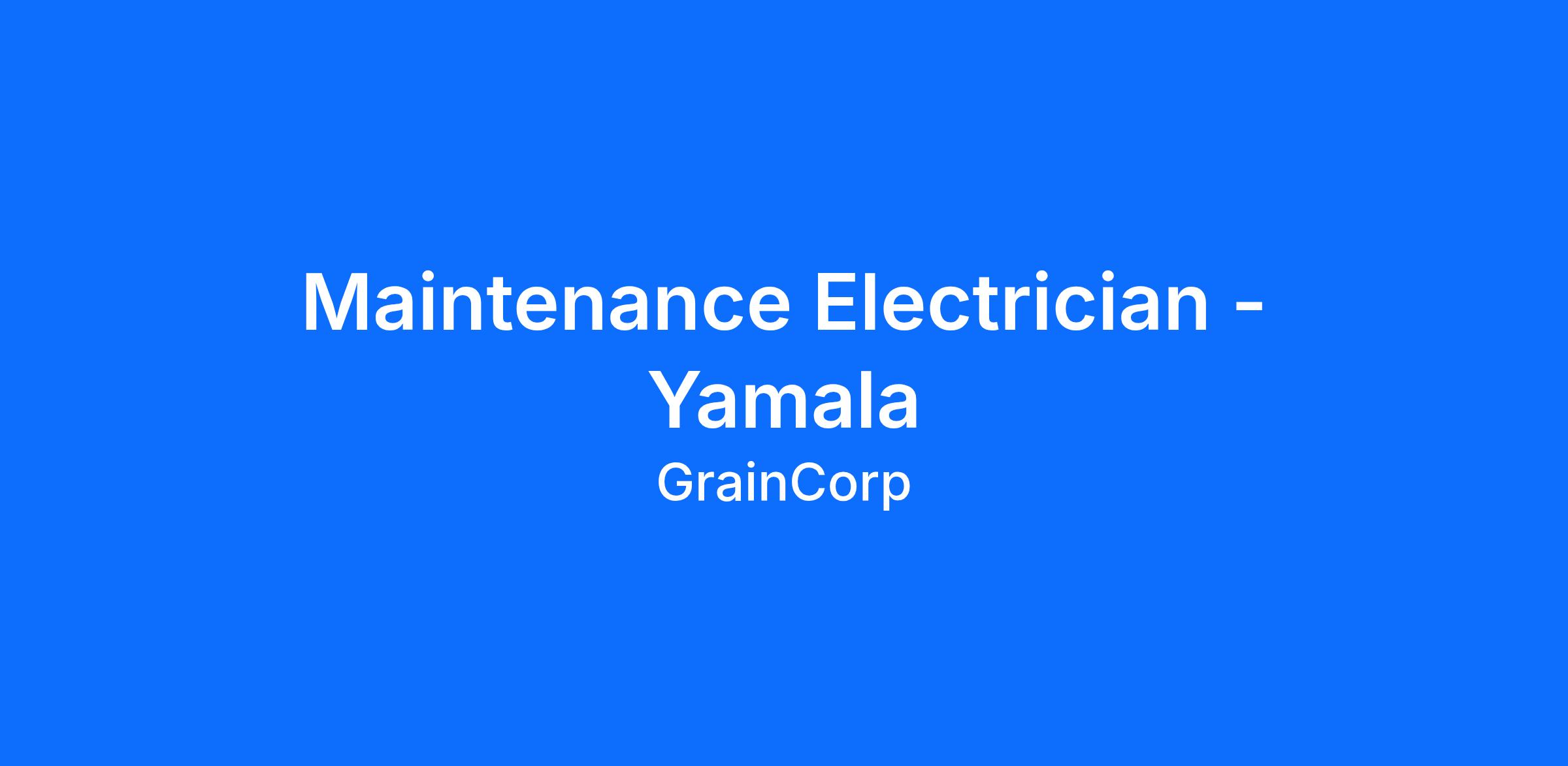 GrainCorp is currently seeking a permanent Maintenance Electrician based at our site in Yamala. Reporting to the Maintenance Supervisor, with responsibility for undertaking electrical maintenance, repairs, validation, installation, testing, tagging and breakdown management. This role operates Monday to Friday, 6:00am to 2:30pm, with opportunities for paid overtime as required. You'll also benefit from a rostered day off once per month. Due to the operational demands of the business, availability to work during the harvest season is essential.