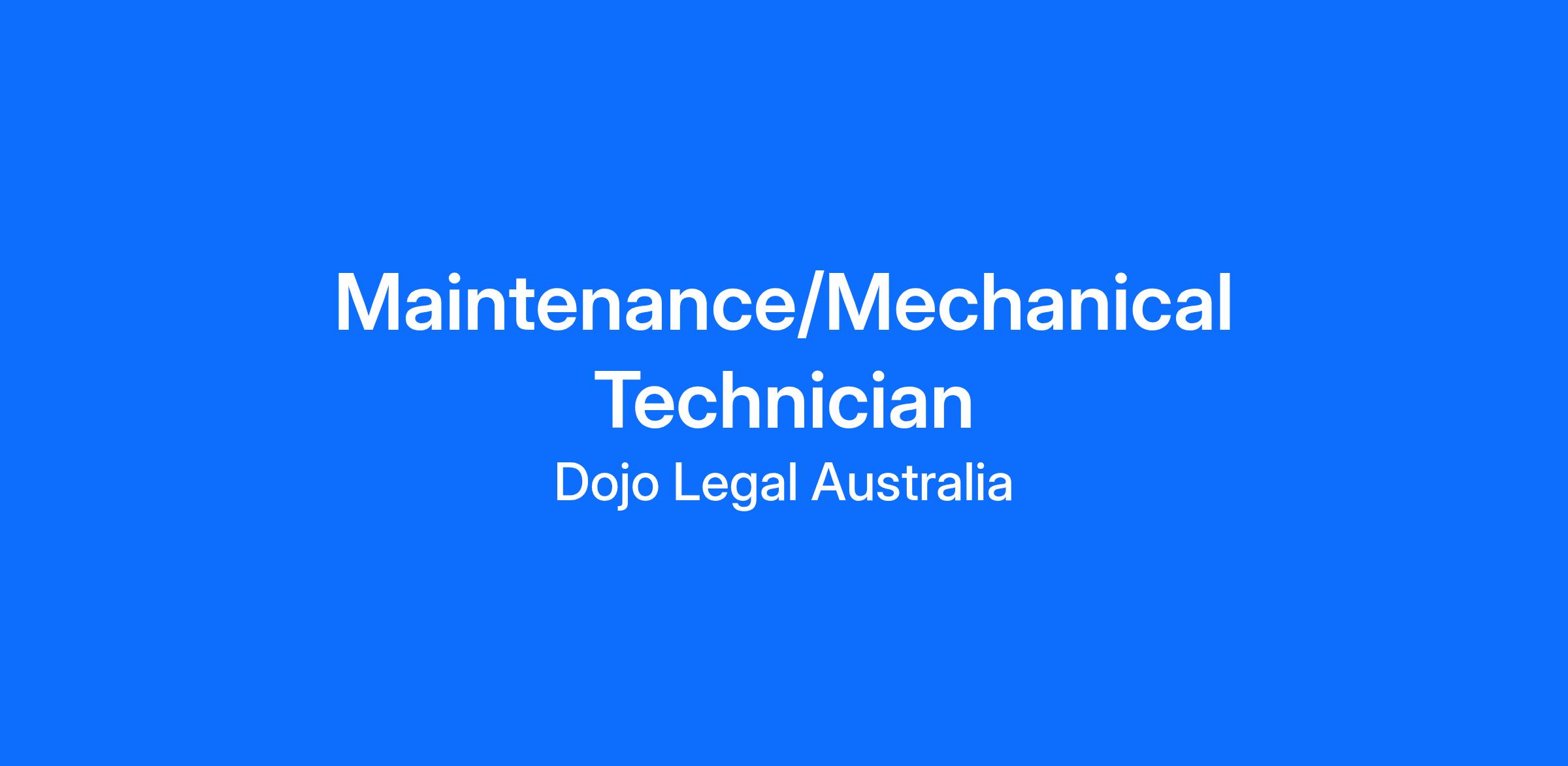 Alternatively, you may email your application letter with your resume to jobpr@dojolegal.com.au with the subject line Maintenance / Mechanical Technician | [Your Name].
