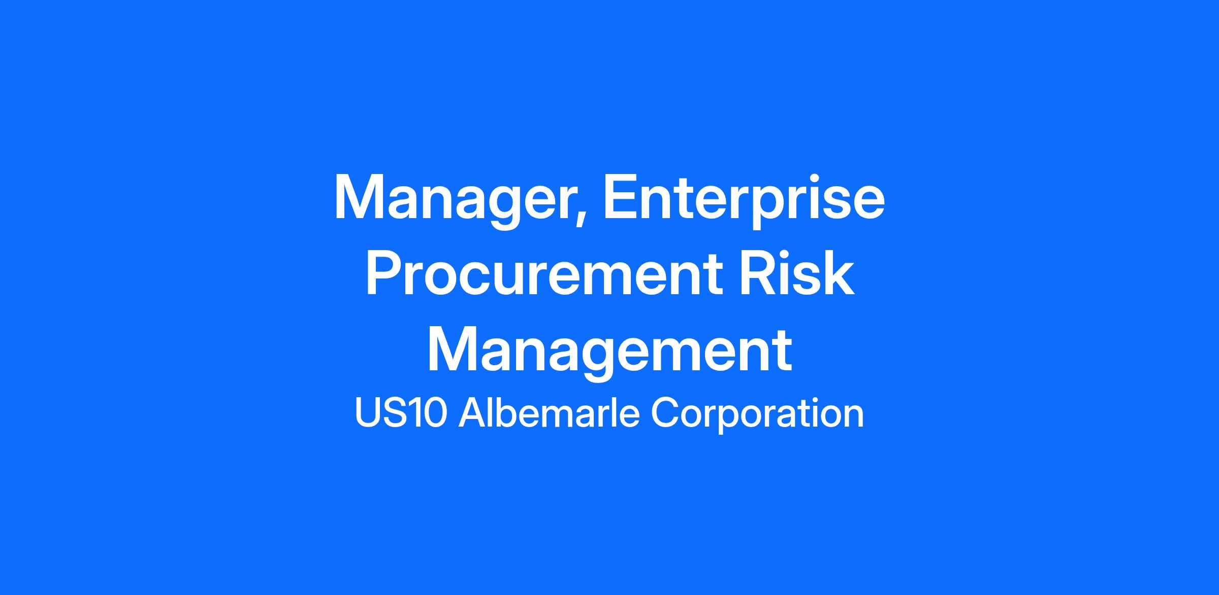 This role supports the Director in embedding procurement risk management (PRM) governance, tools, and analytics into sourcing, supplier onboarding, and performance management. The Manager partners with cross-functional teams—including Legal, Compliance, Finance, IT Security, and Enterprise Risk Management—to ensure Albemarle’s supplier base and procurement activities meet regulatory, ESG, and operational resilience expectations.