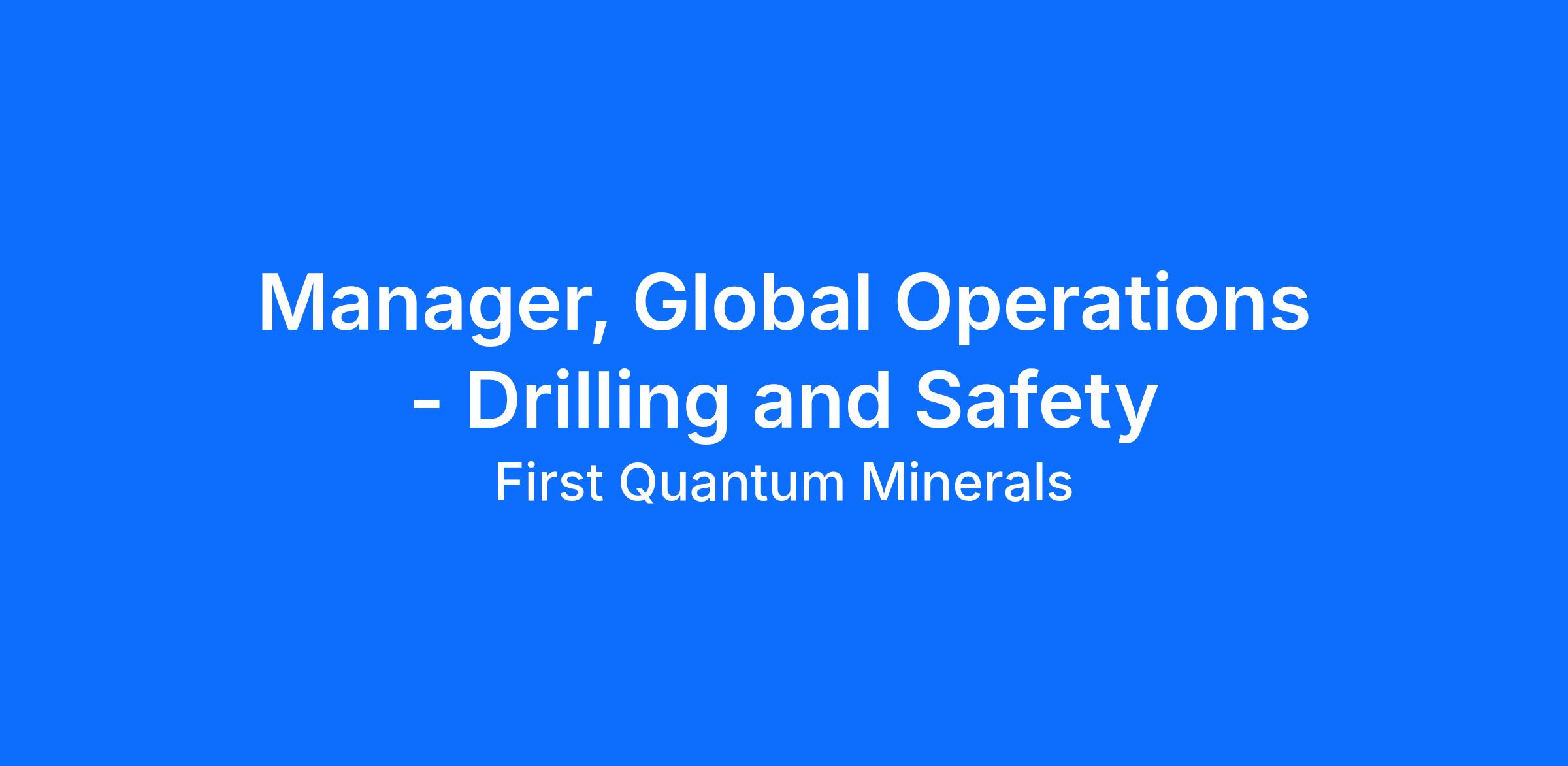 Manager, Global Operations - Drilling and Safety