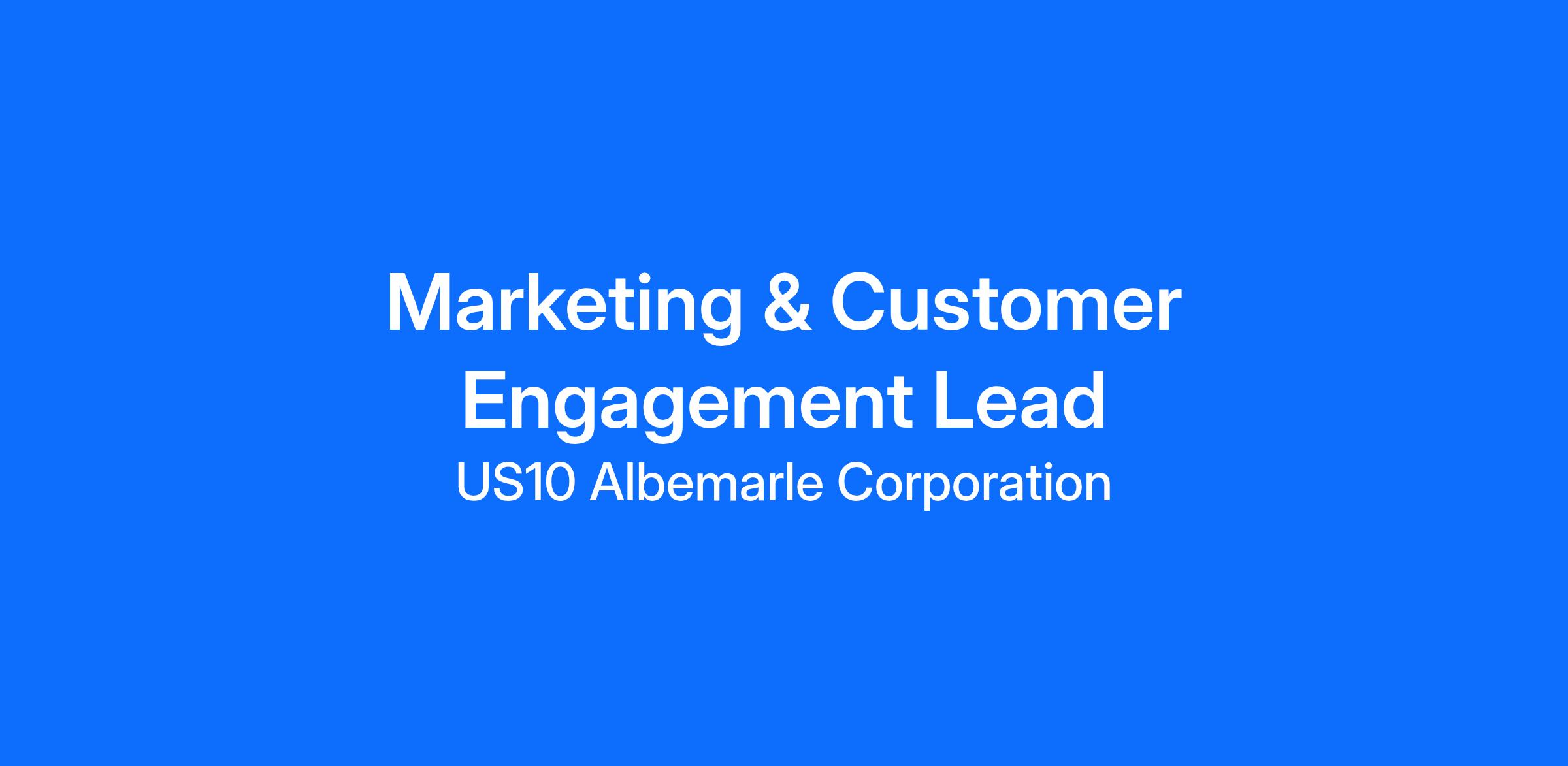 Albemarle is hiring for a Marketing & Customer Engagement Lead. This position is hybrid (3-days per week in office) and located in Charlotte, NC.