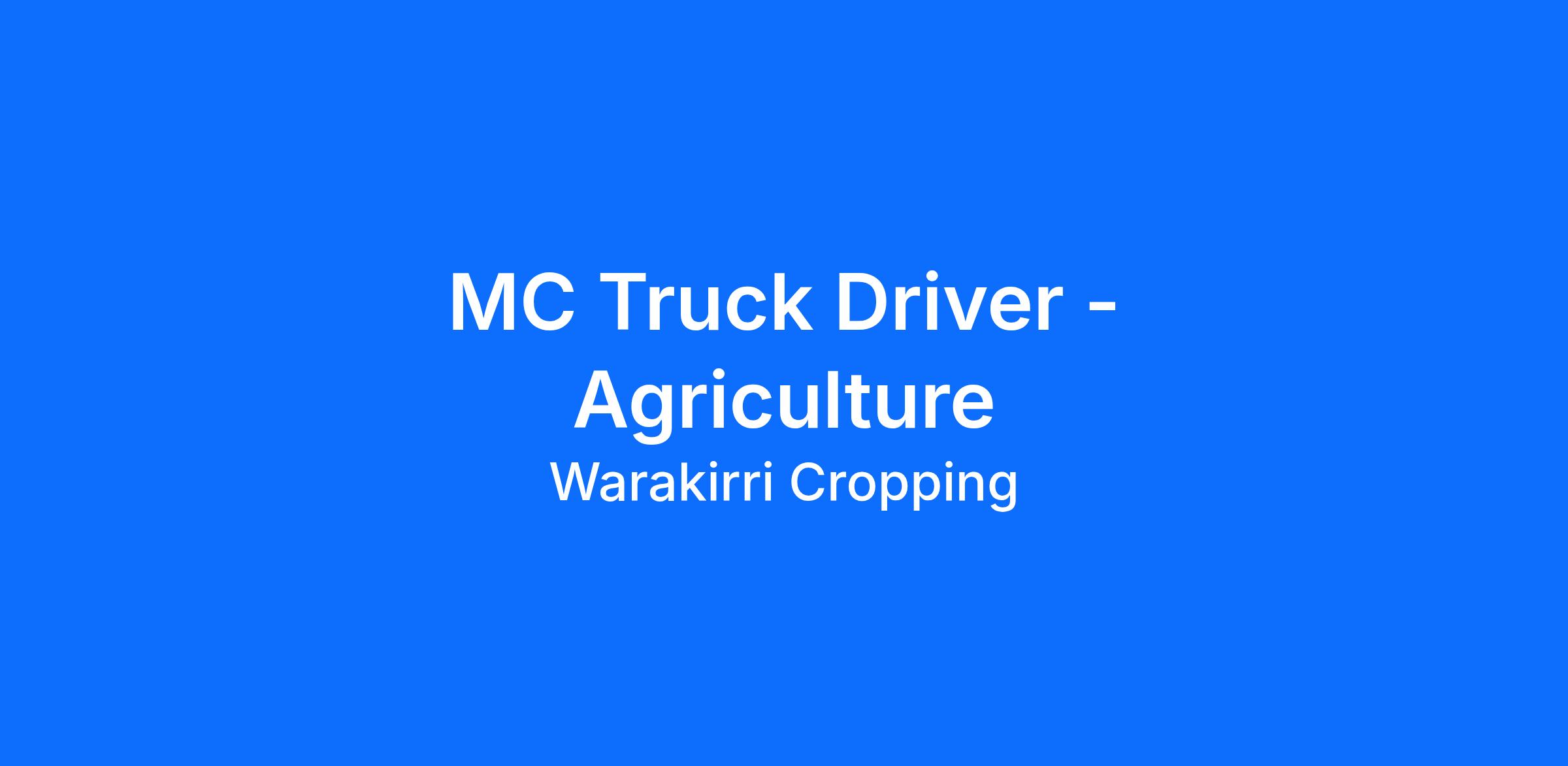 We are seeking a skilled Truck Driver to support our teams during seeding. In this role, you will be responsible for transporting seed, fertiliser and other inputs between sites, as well as supporting general farm logistics to keep seeding operations running efficiently. This position will be done on a casual basis.