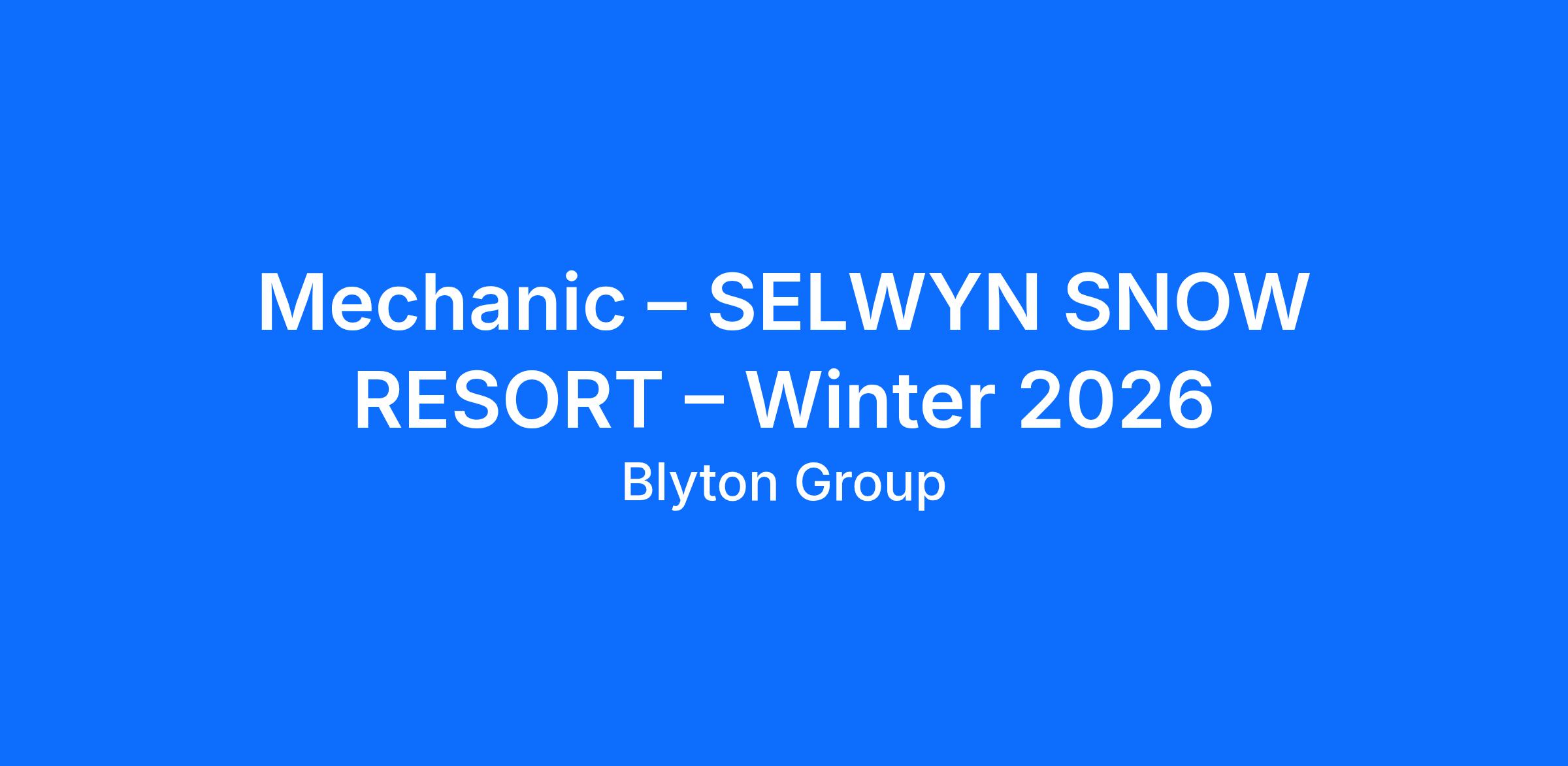 Selwyn Snow Resort is looking for a skilled and dedicated Mechanic to join our team for the 2026 Winter season!