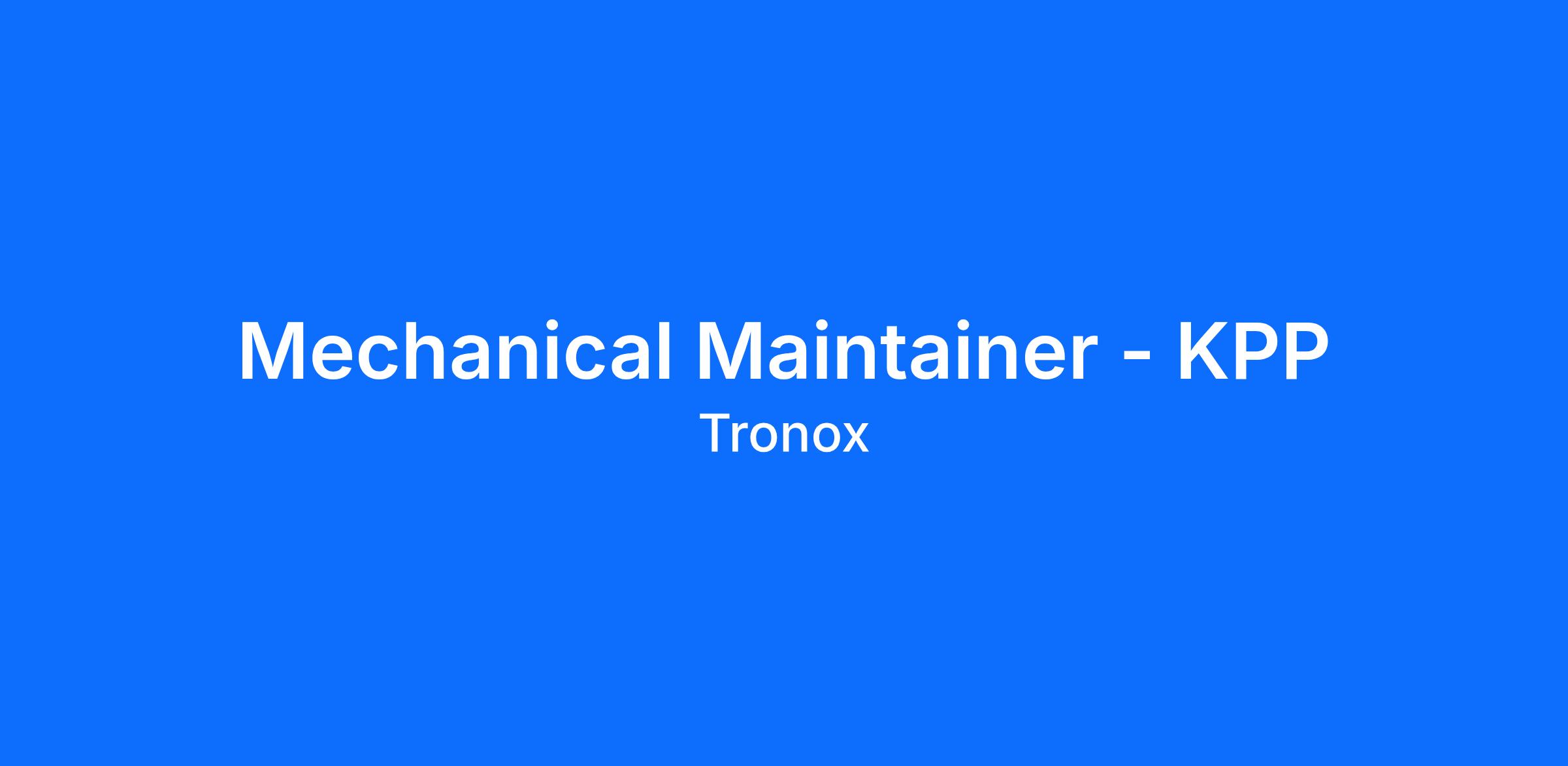 An exciting opportunity has arisen to join Tronox's newly established Recovery (Breakdown) Team, created as part of a recent organisational restructure.