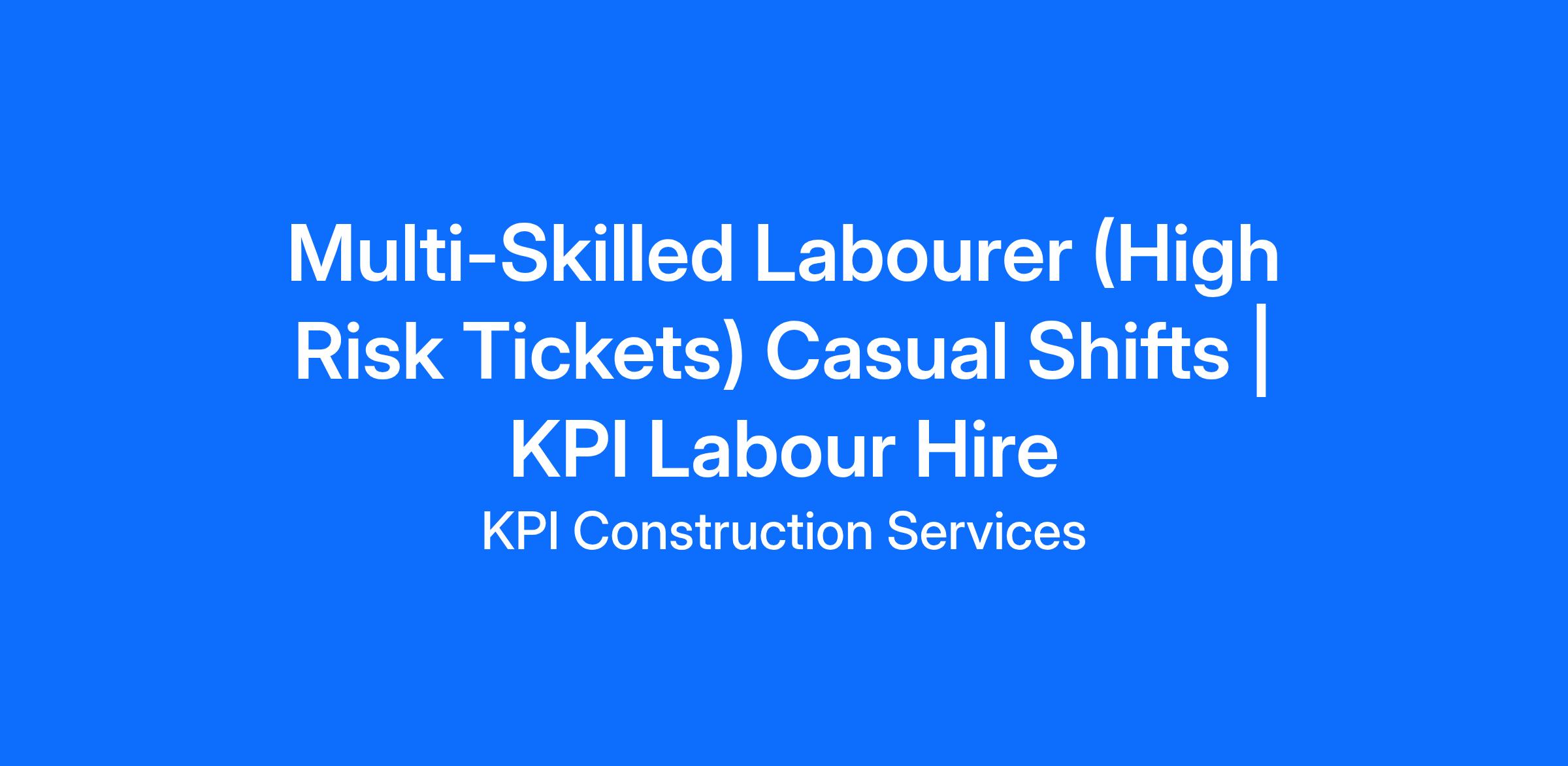 KPI Labour Hire is seeking reliable and ticketed Multi-Skilled Labourers for casual work with semi-regular shifts across Melbourne construction projects.