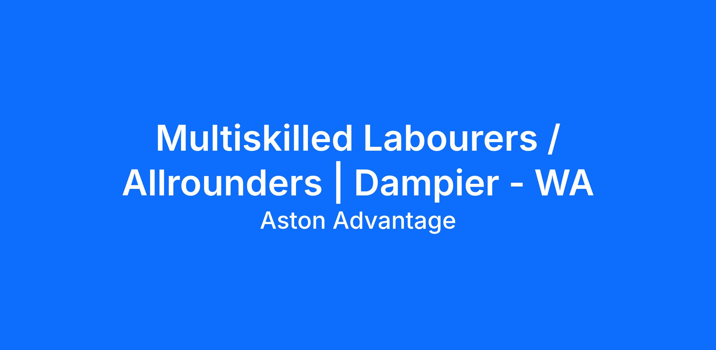 Multiskilled Labourers / Allrounders | Dampier - WA