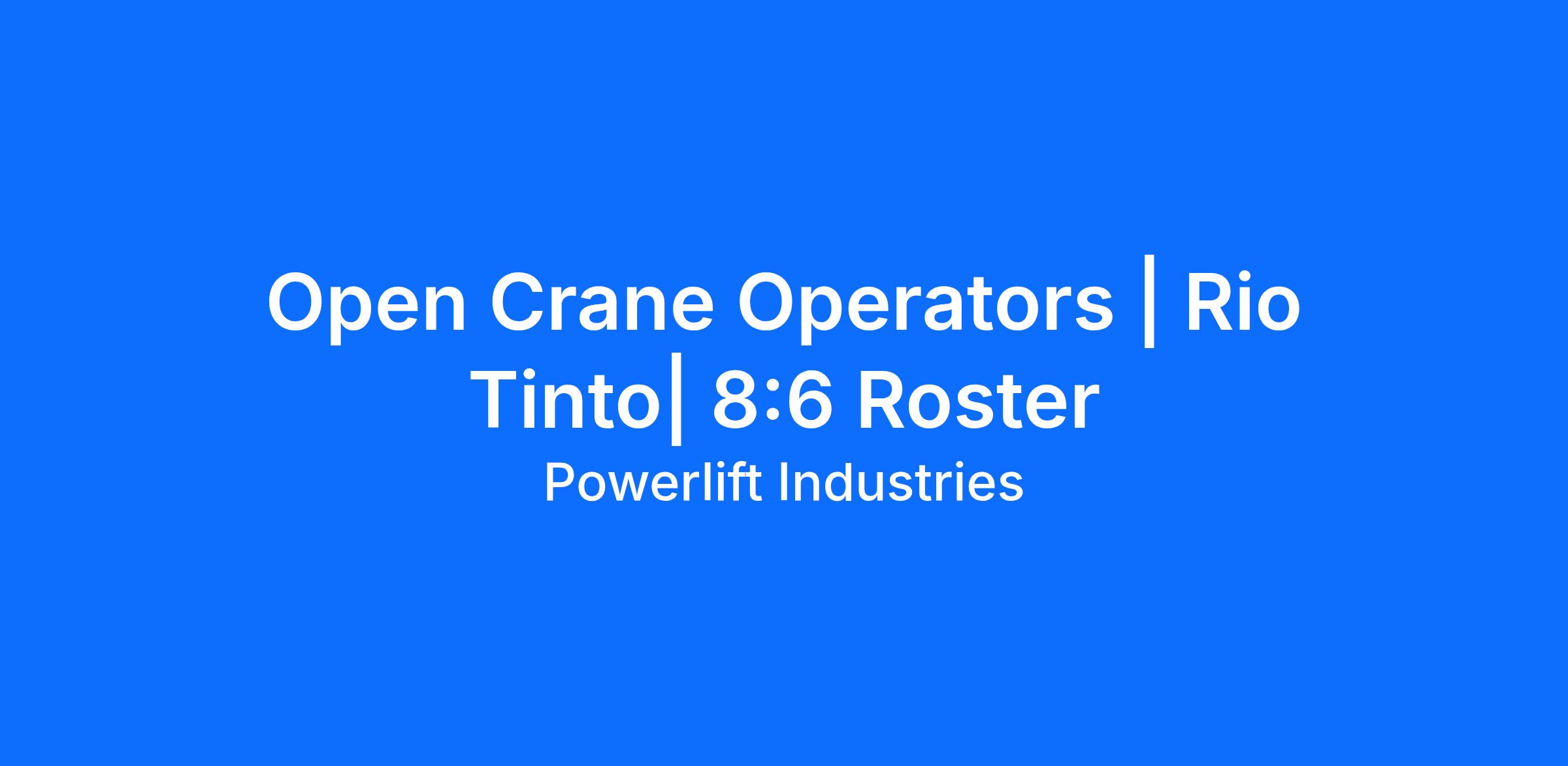 We are seeking suitably qualified and experienced Crane Operators for an immediate start on an 8:6 Roster with Tier One client Rio Tinto.