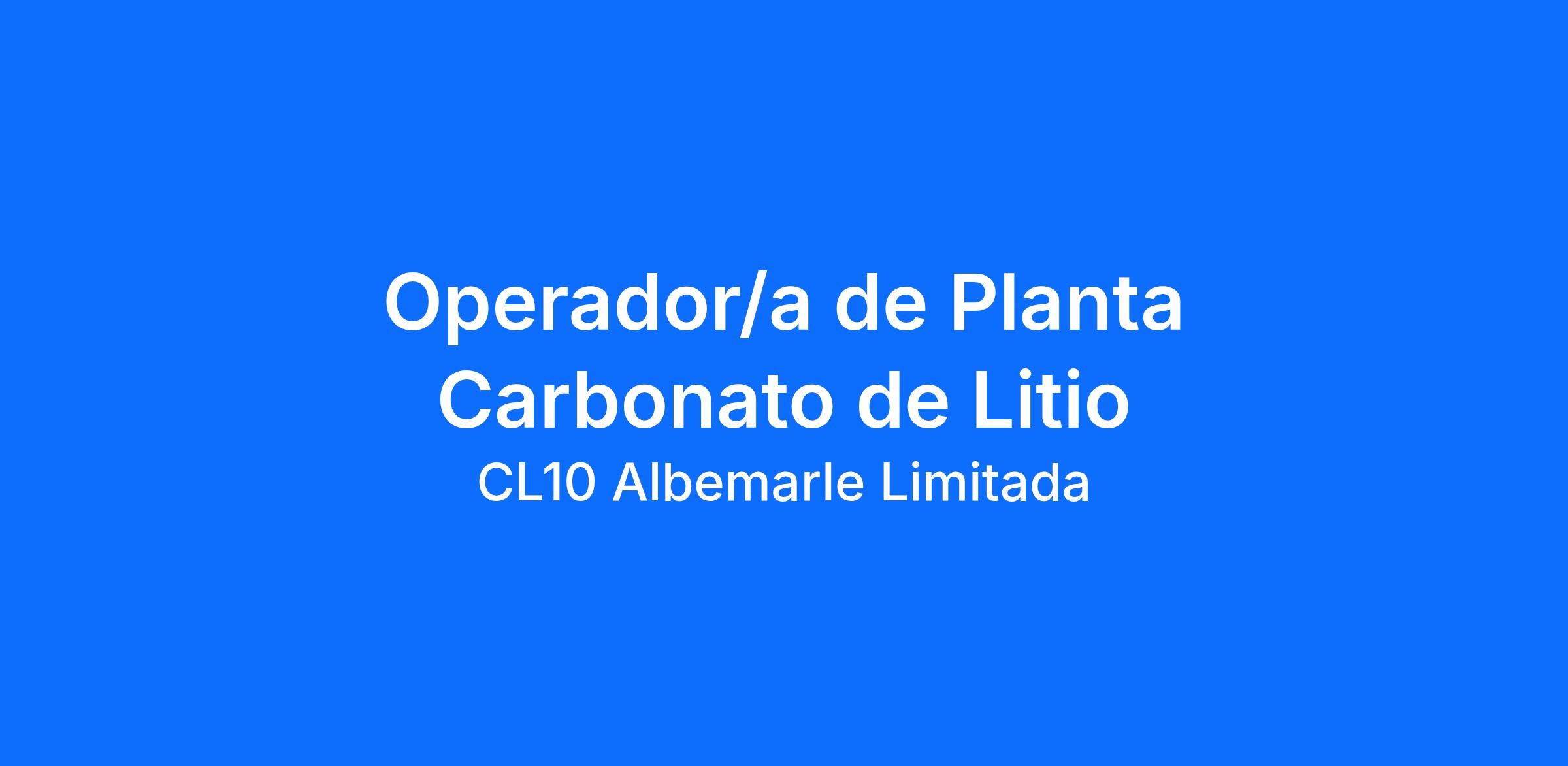 Albemarle está contratando un/a Operador/a de Planta Carbonato de Litio en La Negra, Antofagasta en turno 4x4.