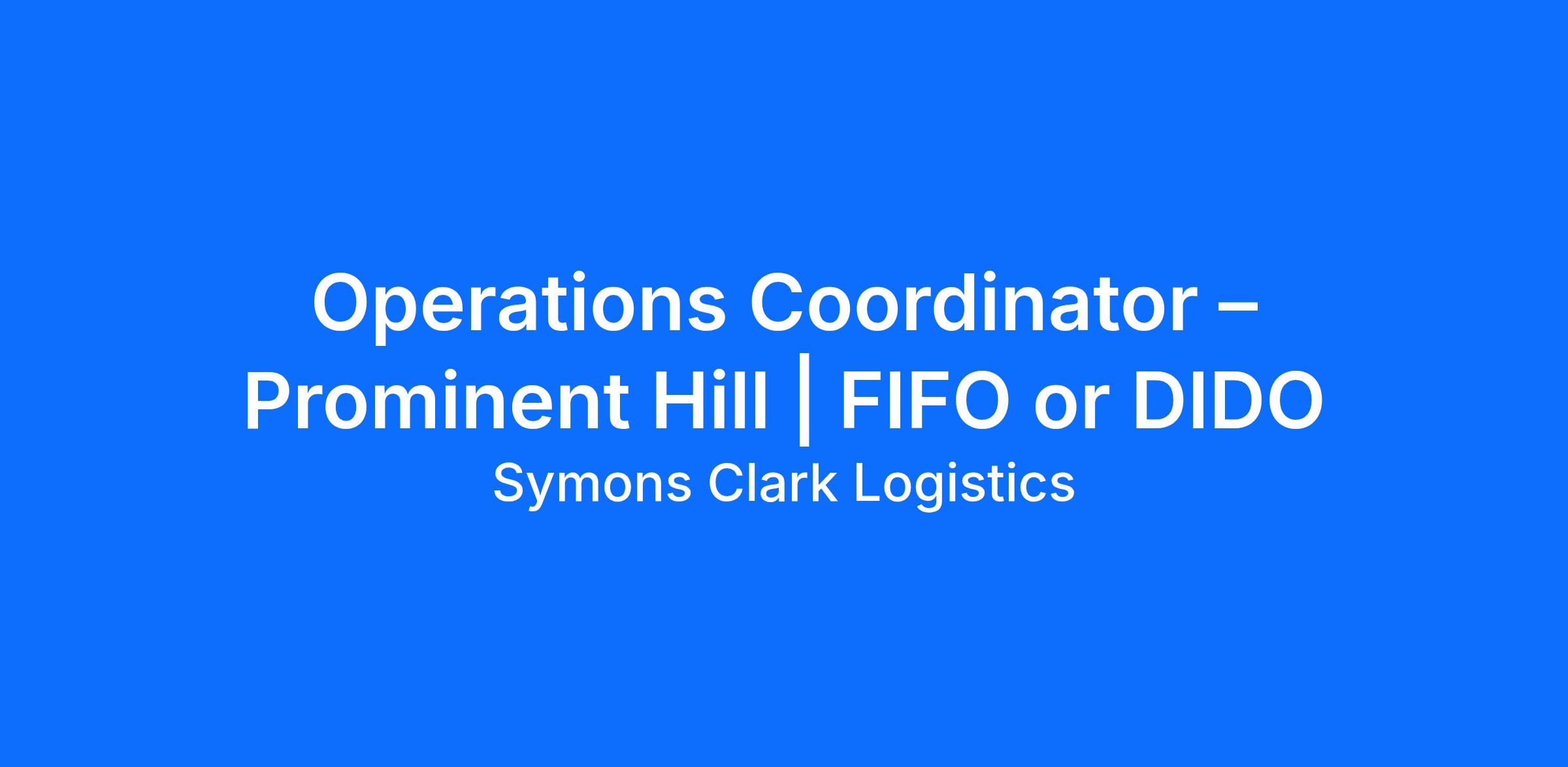 Due to continued growth, Symons Clark Logistics is seeking a detail-oriented and proactive Operations Coordinator to support our Regional Mining Operations Team at Prominent Hill.
