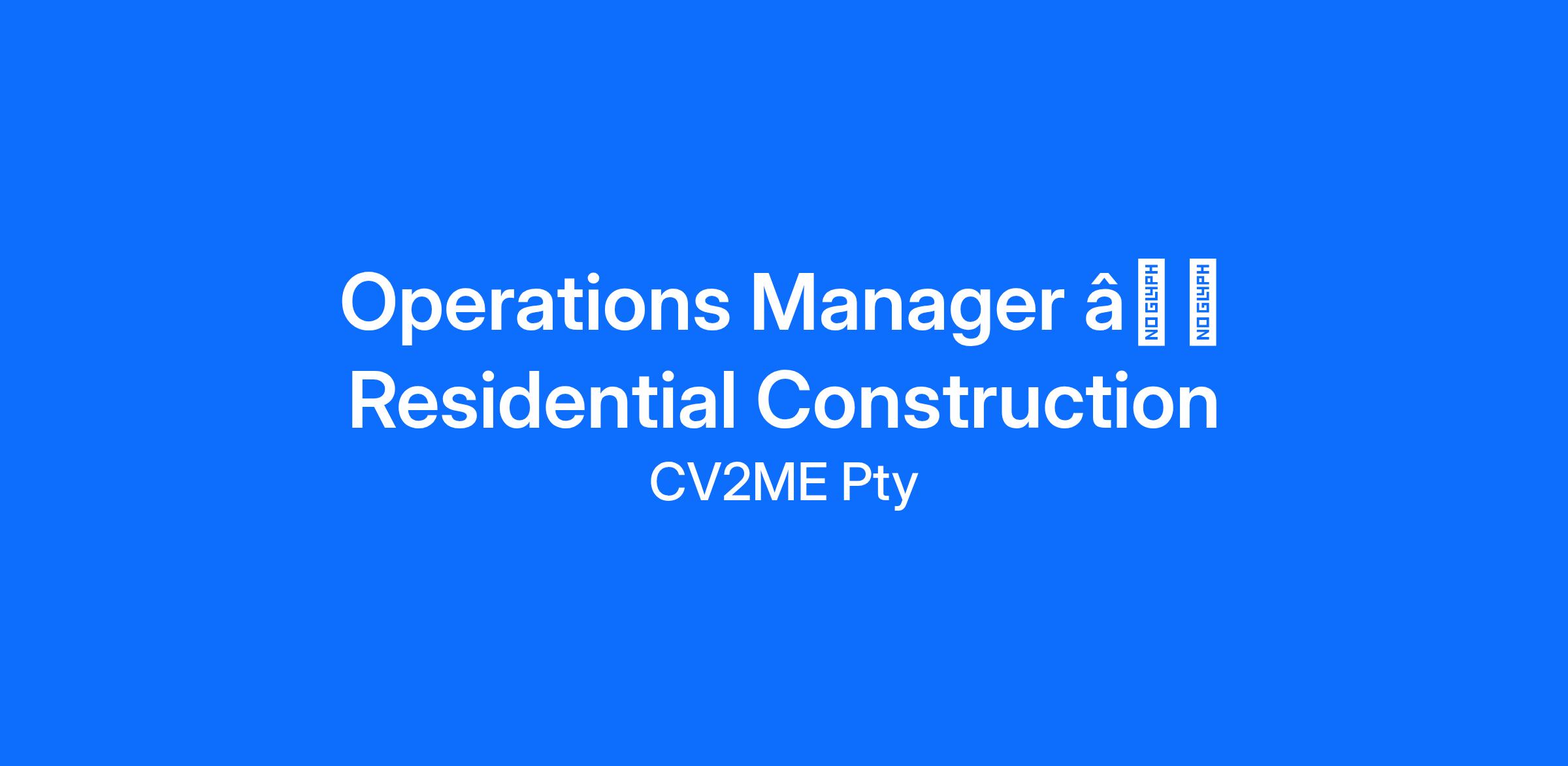 <\/html>"}}],"isMobile":false,"iframe":"true","jobType":"Full time","applyName":"Apply Now","zsoid":"669640624","FontFamily":"Verdana, Geneva, sans\-serif","jobOtherDetails":[{"fieldLabel":"Industry","uitype":2,"value":"Construction"},{"fieldLabel":"Location","uitype":1,"value":"Brisbane"},{"fieldLabel":"State\/Territory","uitype":1,"value":"Queensland"},{"fieldLabel":"Postcode","uitype":1,"value":"4000"}],"headerName":"Operations Manager â Residential Construction","widgetId":"463430000000072311","seekCallBackUrl":"https:\/\/recruit.zoho.com\/recruit\/JBApplyAuth.do","isJobBoard":"false","userId":"463430000000214003","attachArr":[],"customTemplate":"3","isCandidateLoginEnabled":true,"jobId":"463430000018408001","FontSize":"12","location":"Brisbane","embedsource":"CareerSite","indeedCallBackUrl":"https:\/\/recruit.zoho.com\/recruit\/JBApplyAuth.do","seekAdvertId":"seekAnz:organization:seek:2Drm1VVqH"}