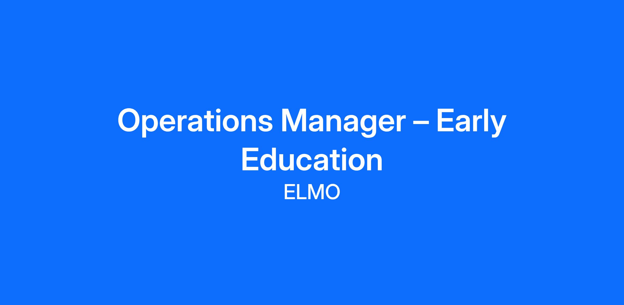 We are seeking an experienced, passionate and driven Operations Manager to manage the strategic and operational functions of our Early Education portfolio.