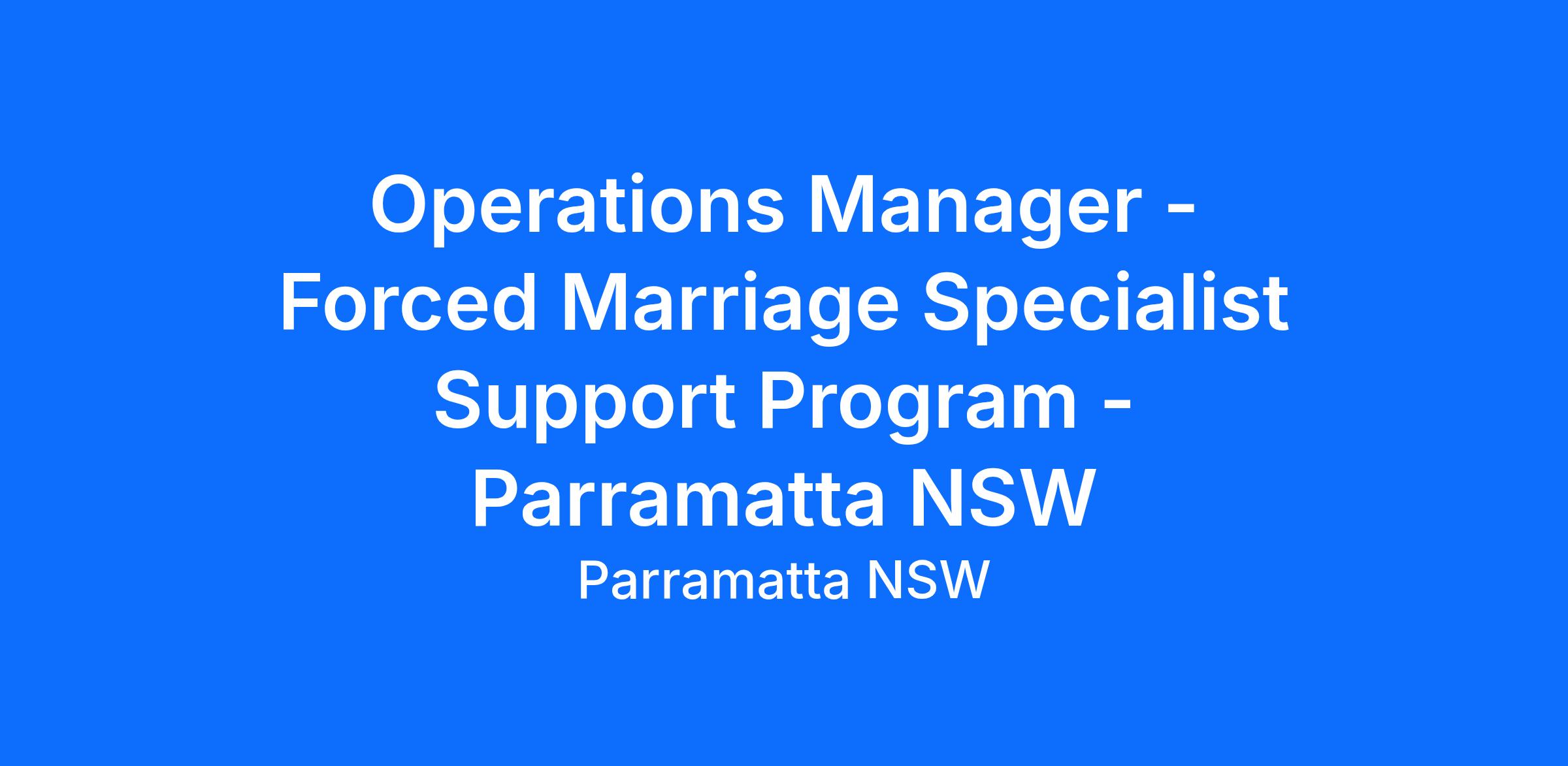 Operations Manager - Forced Marriage Specialist Support Program