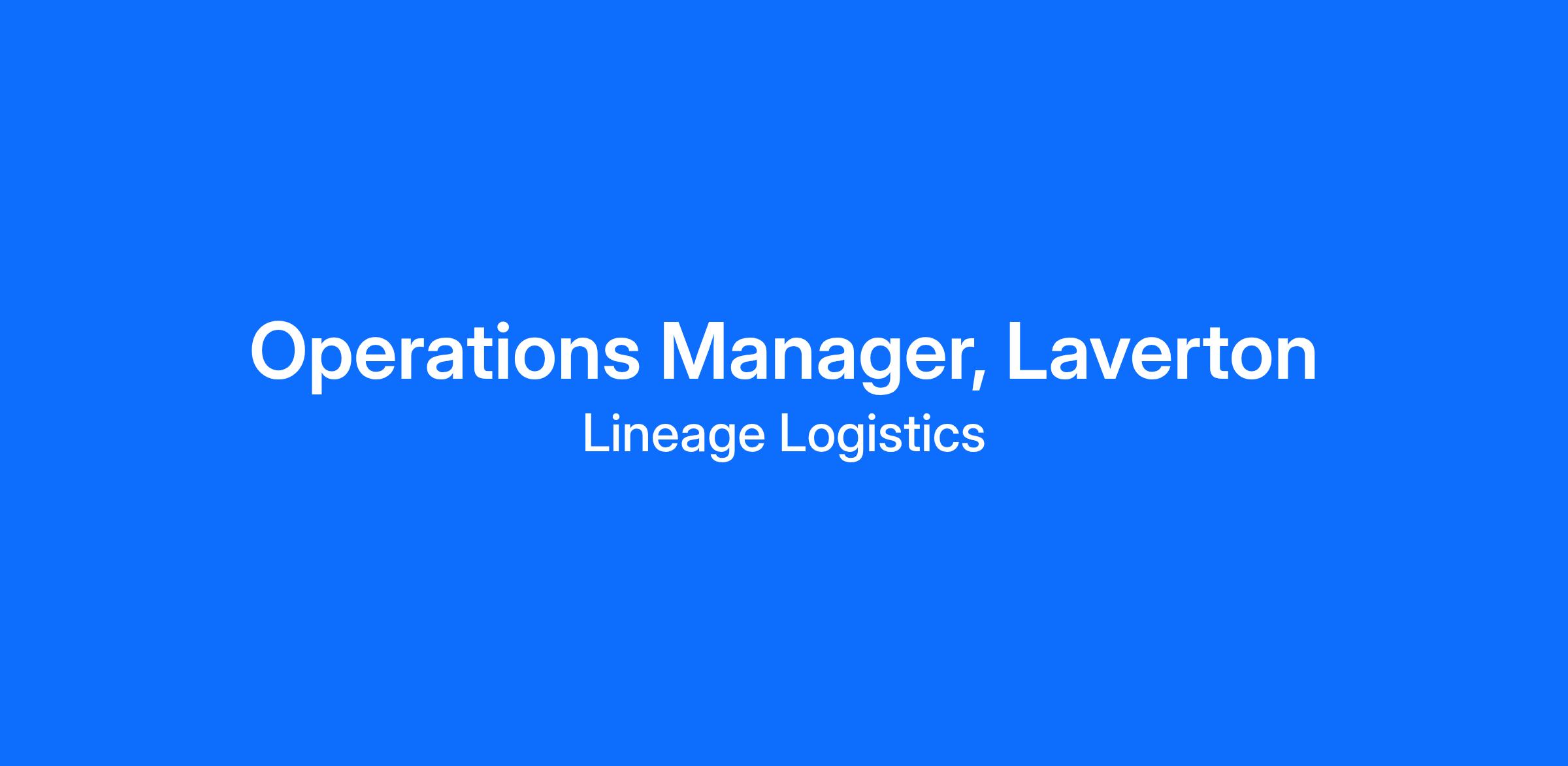 Position Details - Operations Manager, LavertonAt Lineage, we’re transforming the future of temperature-controlled logistics — and people are at the heart of everything we do. As we continue to grow and innovate, we’re looking for an exceptional Operations Manager to help guide our Laverton site with a relentless commitment to safety, people development and operational excellence.