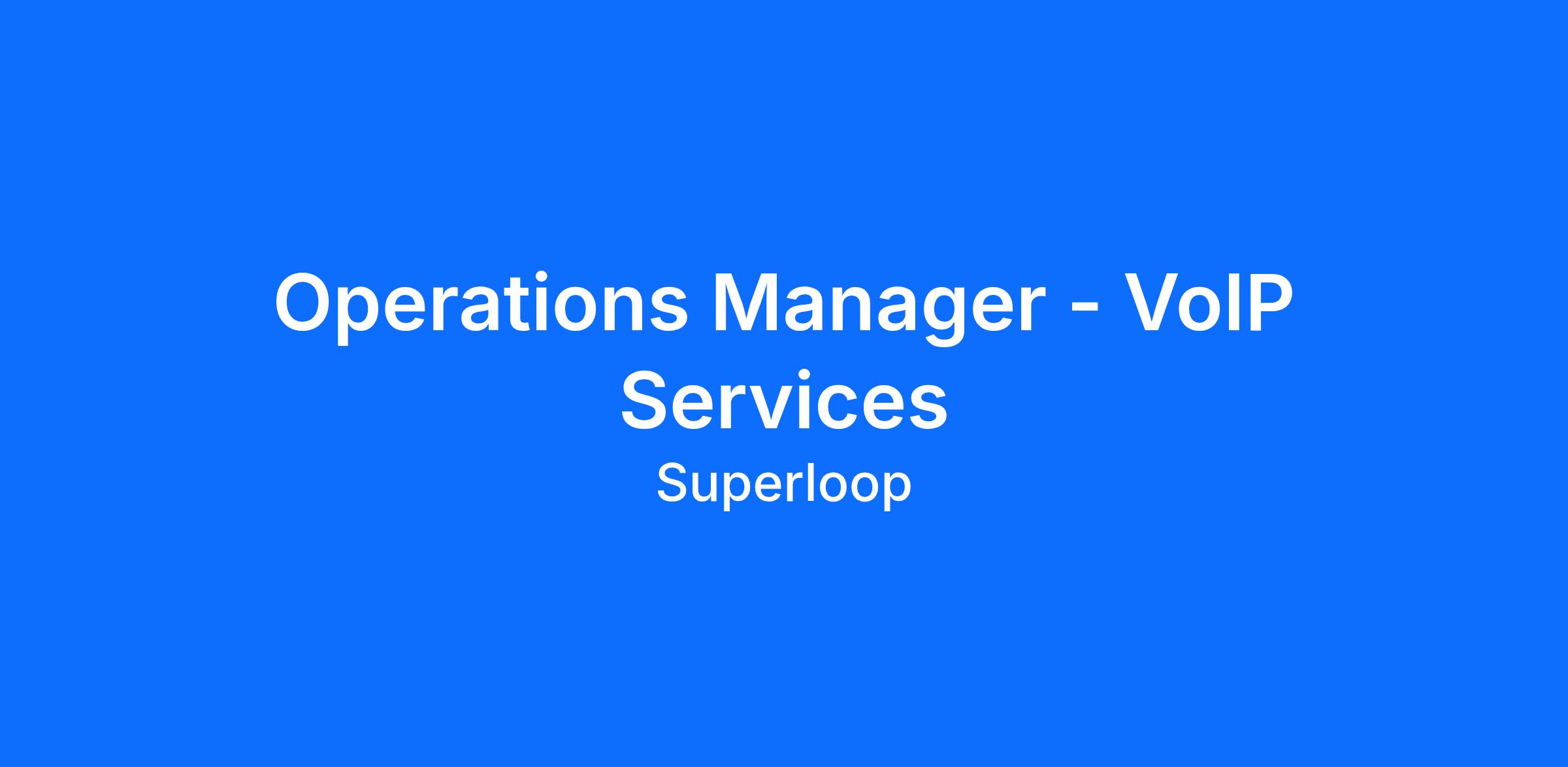 The Operations Manager – VoIP Services is accountable for the operational performance, service quality, and regulatory compliance of Superloop’s VoIP products and supporting platforms. The role leads the corporate VoIP provisioning and support teams and drives service management practices across incident, change, and problem management to ensure reliable, secure, and customer-focused outcomes. This position owns the operational cadence (KPIs, reporting, and governance), manages supplier performance and compliance obligations (including Emergency Call Service (000) requirements), and ensures the ongoing readiness and evolution of Superloop’s voice infrastructure.
