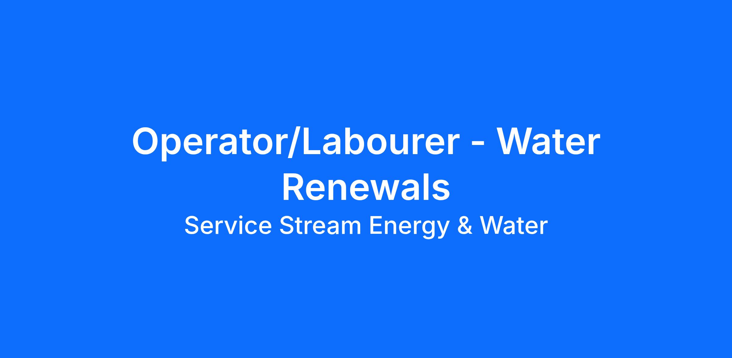 An exciting opportunity has arisen for an Operator/Labourer – Water Renewals to join Service Stream