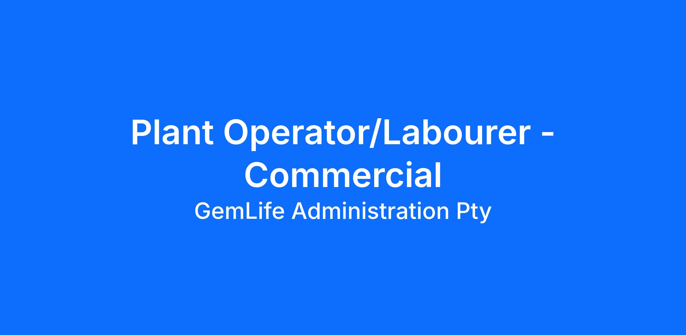 Plant Operator/Labourer - Commercial
