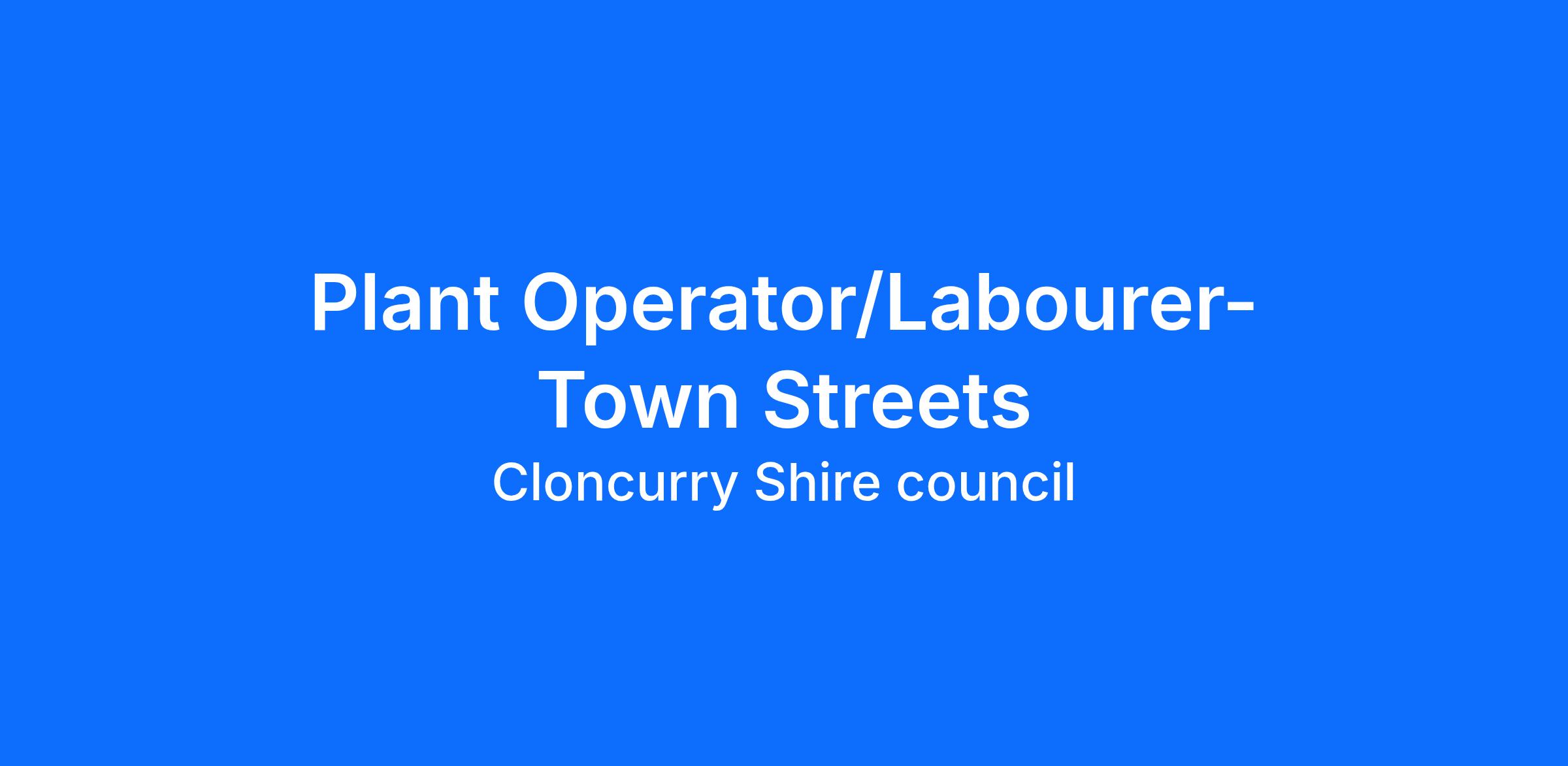 Cloncurry Shire Council is seeking a Plant Operator / Labourer to join our Town Streets team within the Infrastructure & Environment Department.