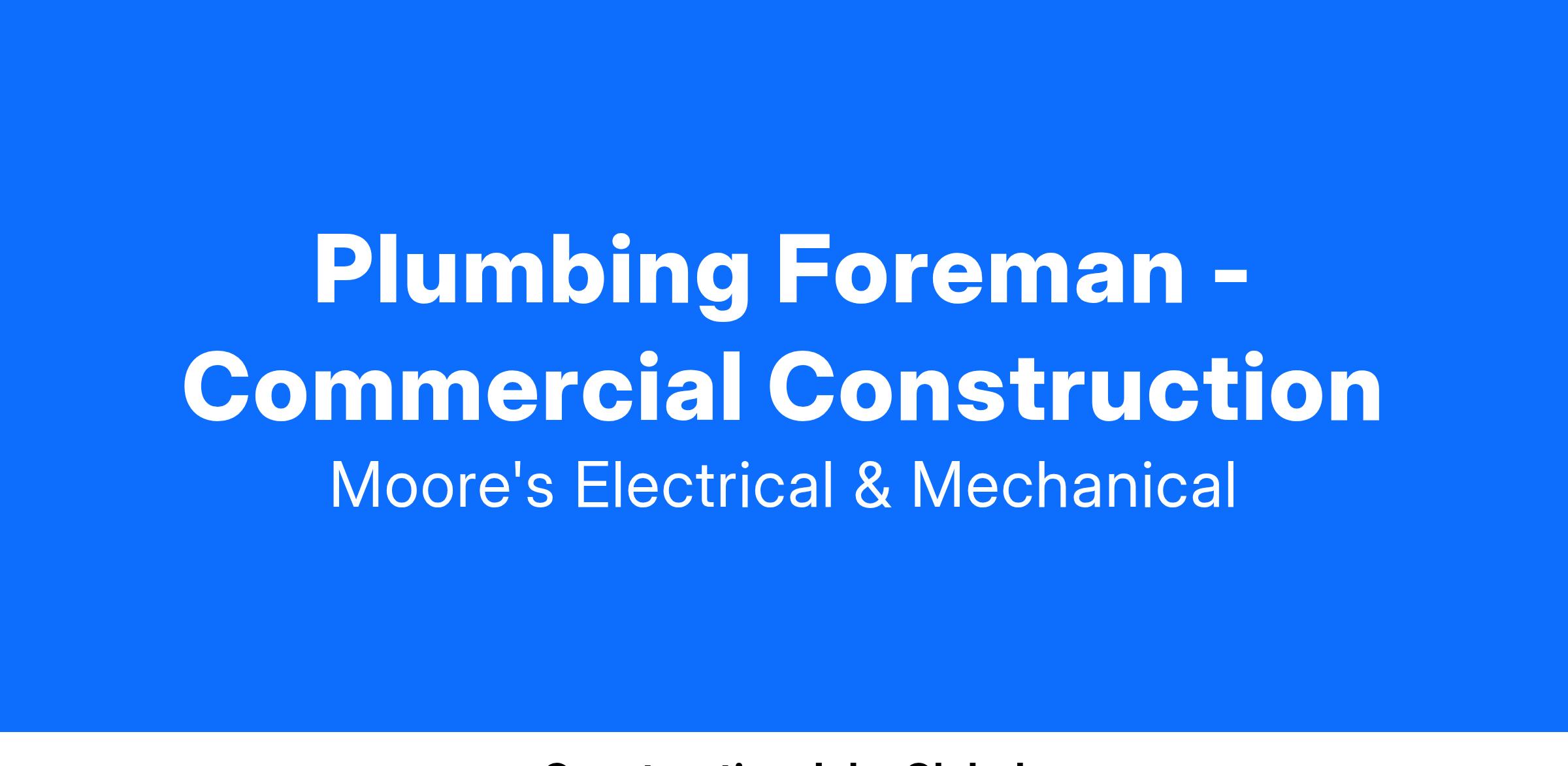 Plumbing Foreman - Commercial Construction