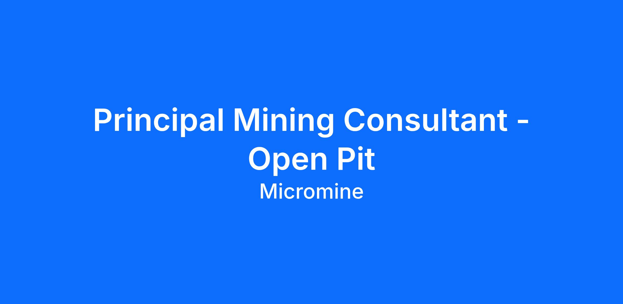 Ready to make your mark as a Principal Mining Consultant at Micromine? Apply now or visit www.micromine.com to learn more about our business and the opportunities we offer.