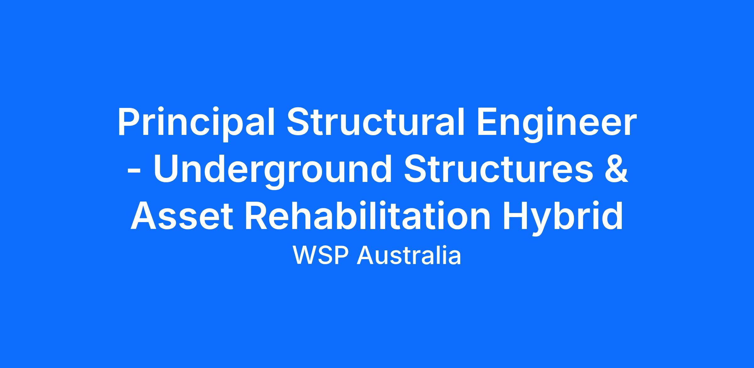 At WSP, we’re driven by a shared purpose: to bring the very best technical expertise to the most complex engineering challenges shaping our communities. As we continue to strengthen our trenchless design and underground construction capability across Australia and New Zealand, we are seeking a Senior Associate to Principal Structural Engineer to help deliver solutions across some of the region’s most significant water infrastructure and asset rehabilitation programs.