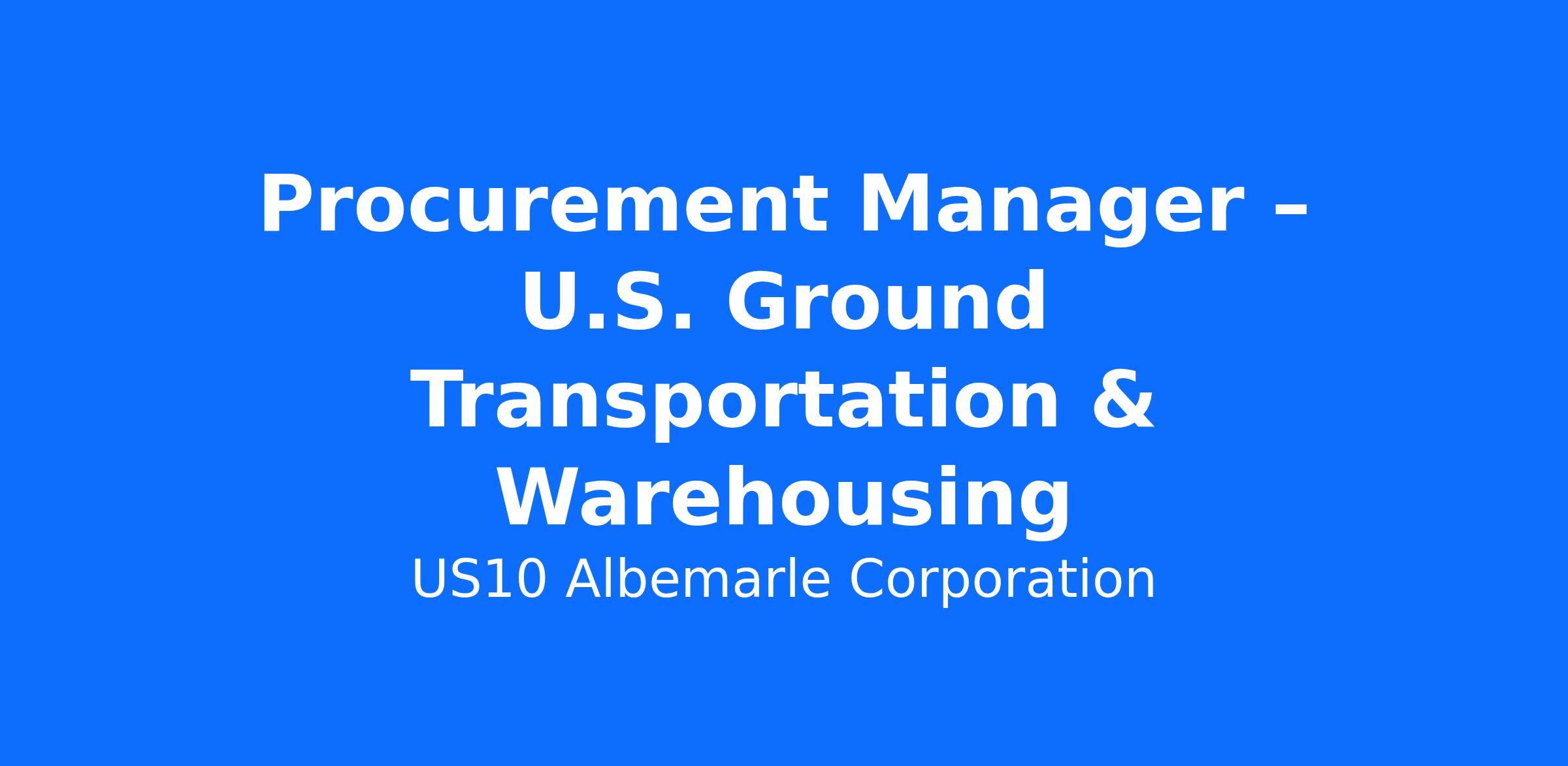 Albemarle is seeking a Procurement Manager of U.S. Ground Transportation & Warehousing. This position is a hybrid role, required to be in the Charlotte office 3 days a week.