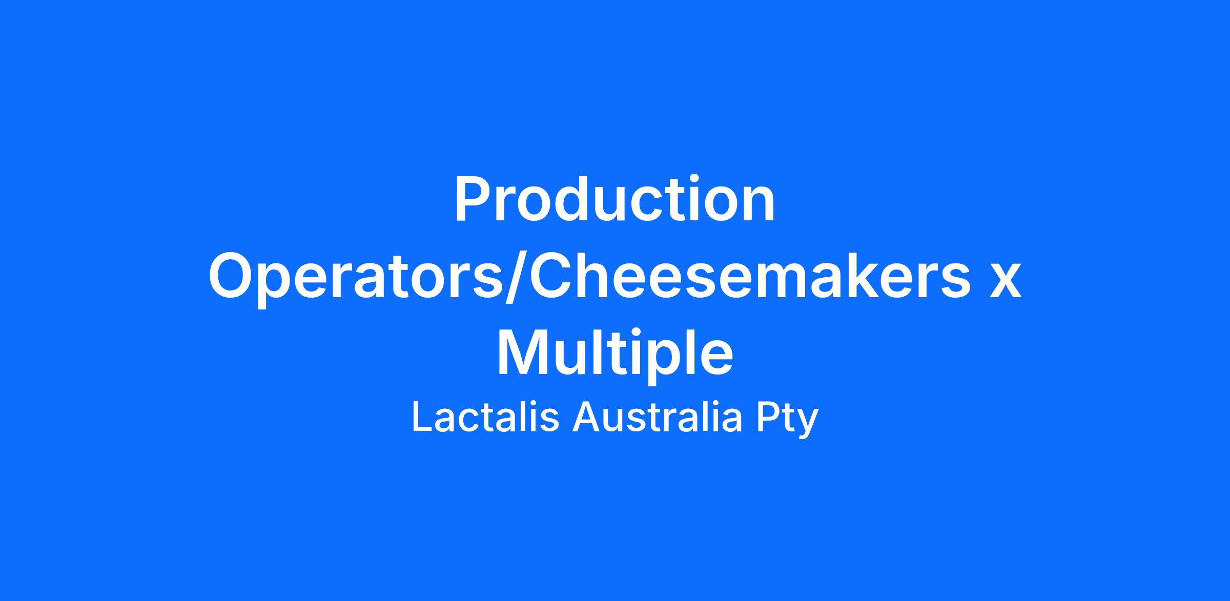 We are now seeking a pro-active Production Operators/Cheesemakers (Fixed Day/Afternoon Shifts) who are ready to make a positive impact to our Jindivick (Victoria 3818) team. The position is full-time.