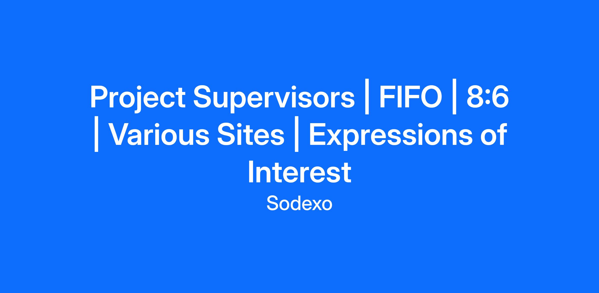 Sodexo is seeking expressions of interest from suitably qualified and highly motivated Project Supervisors to join our Projects Team, working across multiple locations within the Pilbara region. Reporting to your Project Lead Engineer, your primary responsibility will to plan and implement and execute minor project programs while providing advice and support to work teams and contractors. Positions on offer are on a FIFO 8:6 roster (flights from Perth). These roles are permanent, full-time positions with Sodexo.