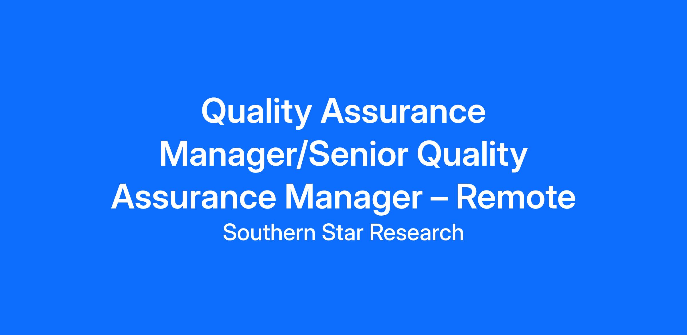 We are looking for an experienced Quality Assurance Manager or Senior Manager to join our growing team. As a QA Manager/Senior Manager at Southern Star, you’ll work in an exciting and fast-paced environment, assisting the Head of Quality Assurance in the execution of a broad range of quality activities and help to embed a quality culture within the organisation.