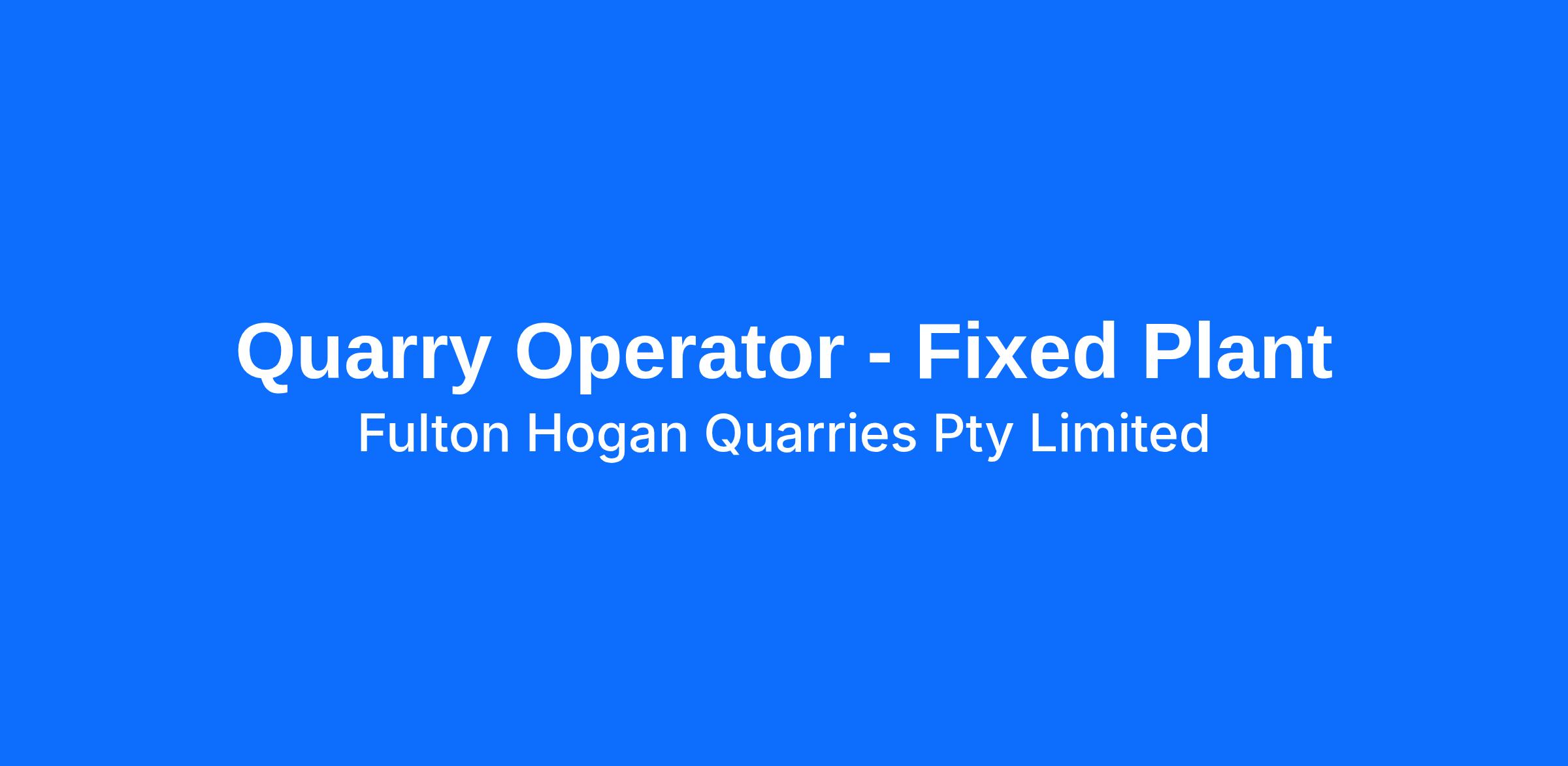 Due to growth in our Infrastructure Services business, we are currently looking for a full time Quarry Operator to join Fulton Hogan’s Tylden Quarry.
